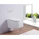 Унитаз подвесной ESBANO - AZALEA (White):-унитаз с безободковой системой слива-горизонтальный выпуск P-Trap-диаметр выпуска 100мм-меж осевое крепление 180мм-материал: фаянс-цвет: белый-сиденье: DUROPLAST с крышкой "soft-close" - плавное опускание (микроли