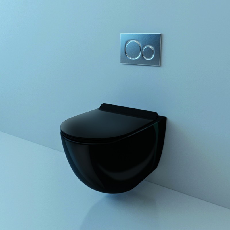 БЕЗОБОДКОВЫЙ подвесной унитаз. Горизонтальный выпуск ("P-Trap" 180 мм). Цвет: белый. Сидение: ультратонкое, быстросъёмное, дюропласт с металлическим крепежом и микролифтом (механизм "Soft Close").