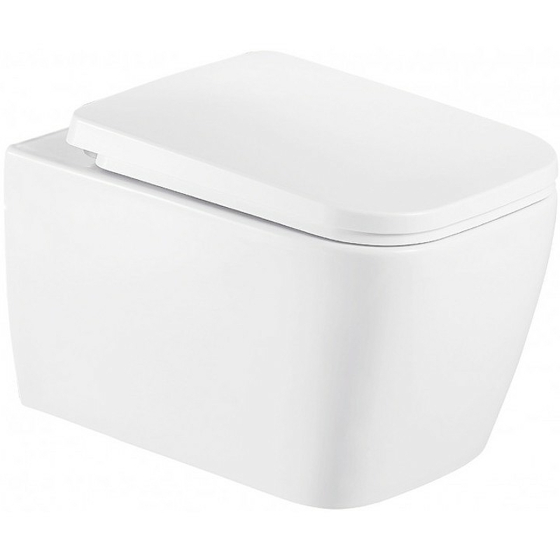 БЕЗОБОДКОВЫЙ подвесной унитаз. Бортик по периметру чаши. Горизонтальный выпуск ("P-Trap" 180 мм). Цвет: белый. Сиденье: ультратонкое, быстросъёмное, дюропласт с металлическим крепежом и микролифтом (механизм "Soft Close").