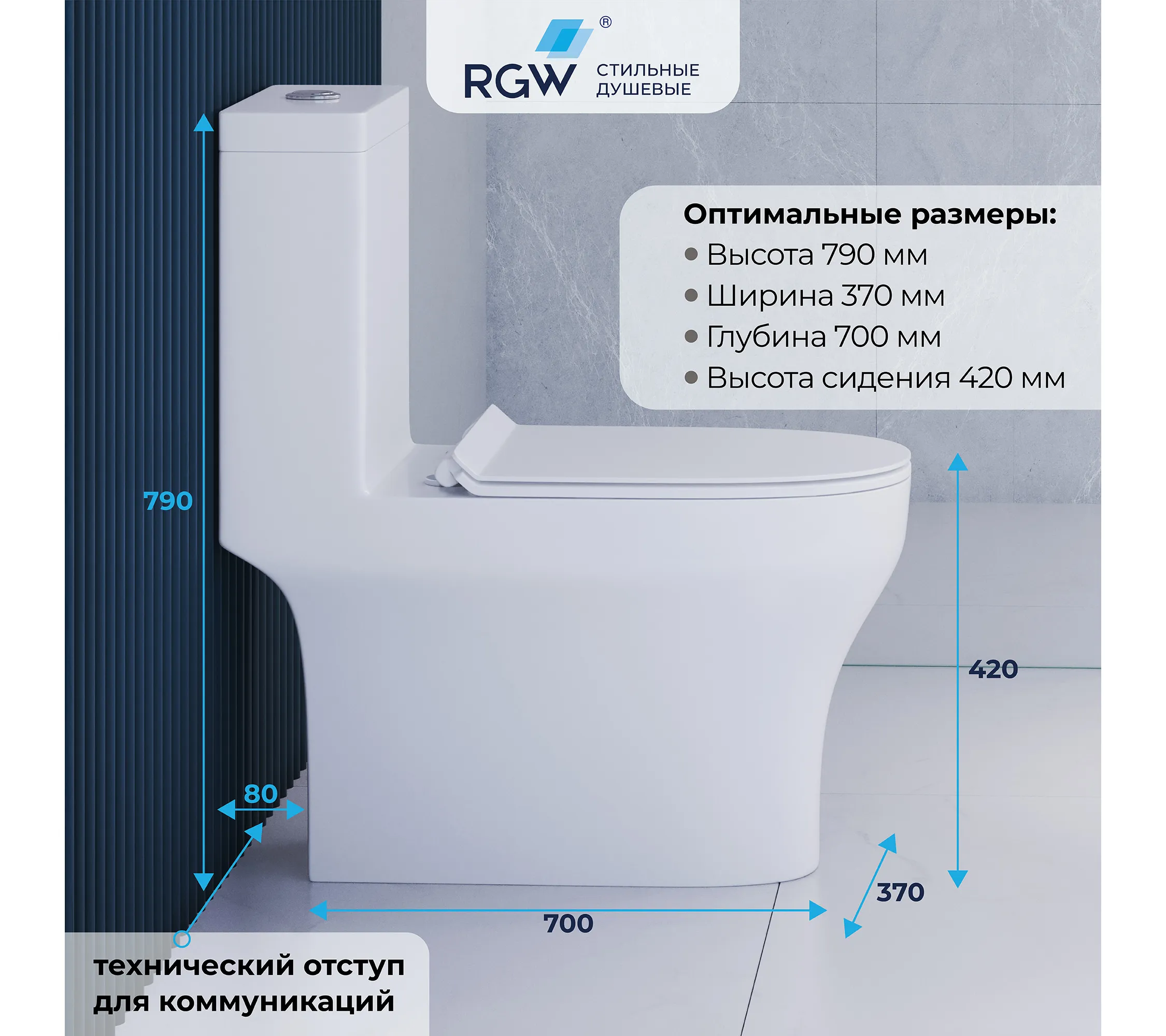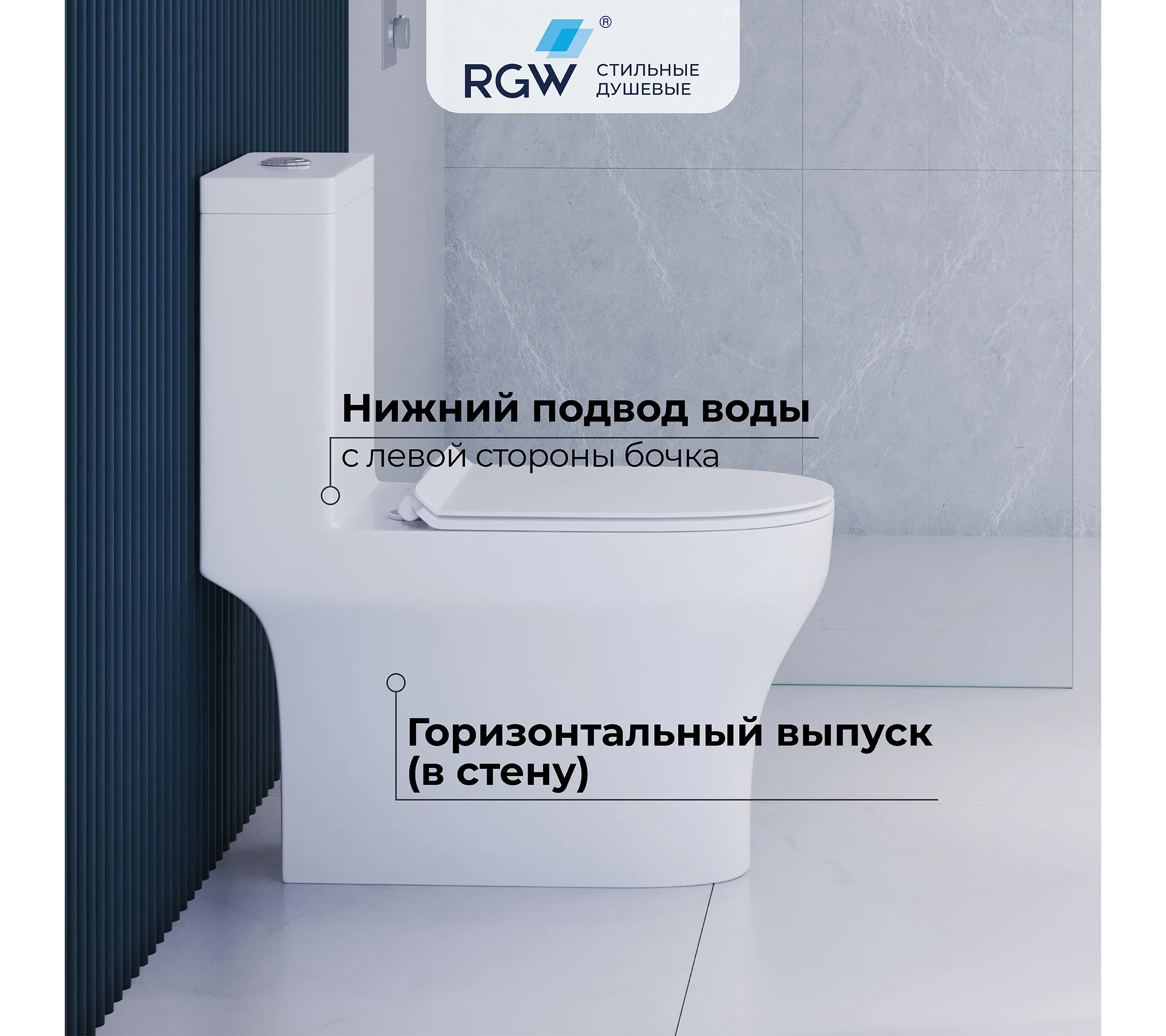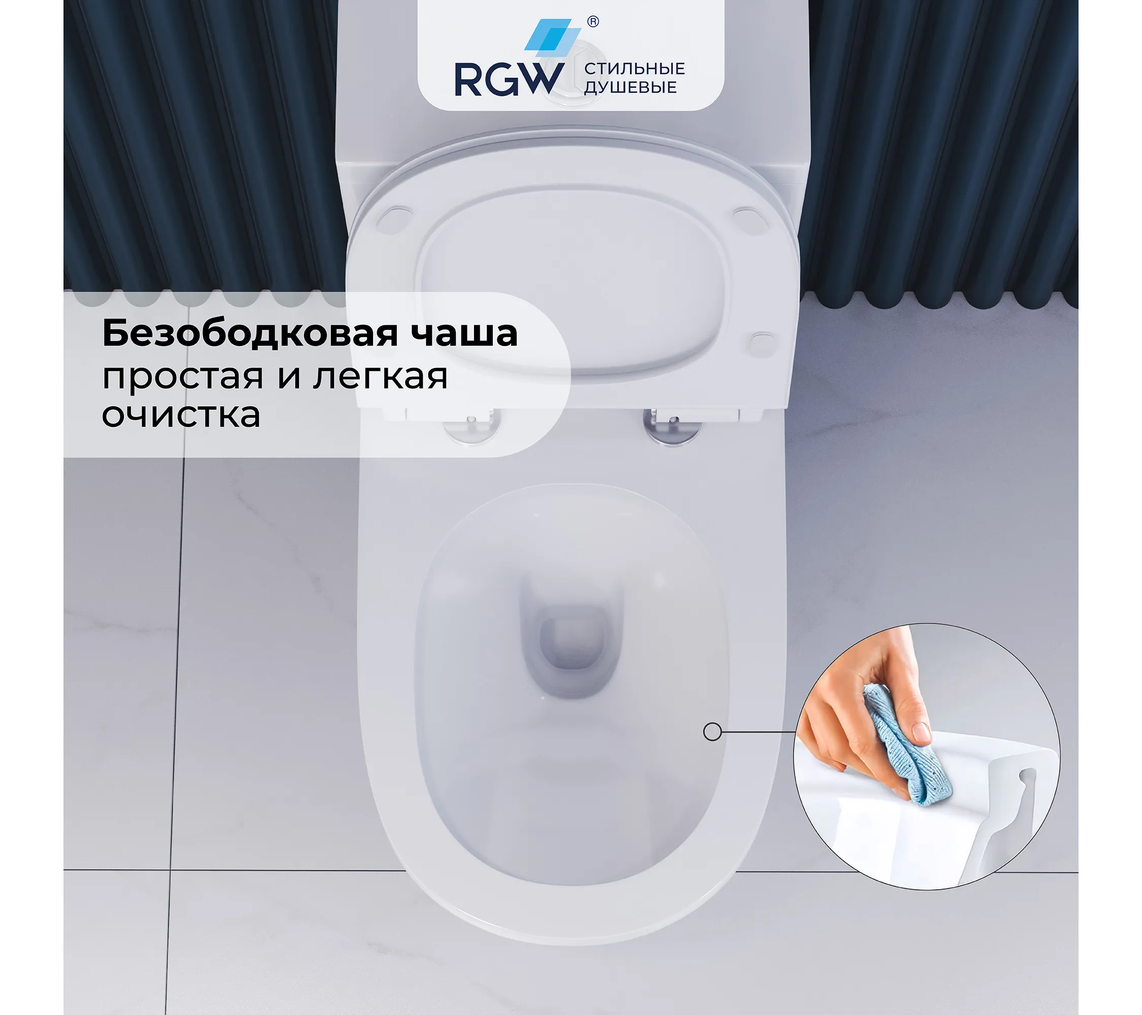 Безободковая конструкция чаши и слив RIMLESS: