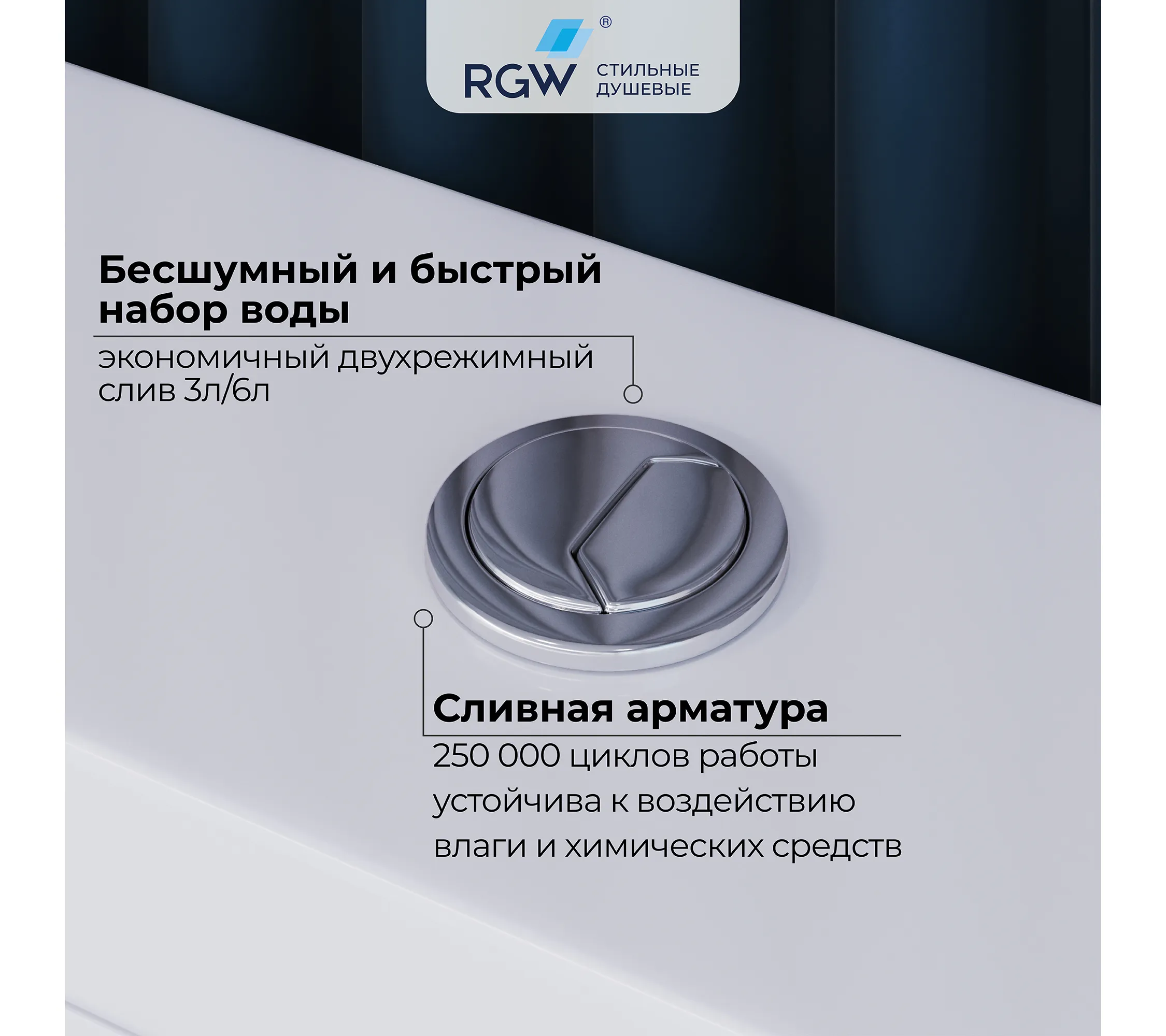 Модель унитаза оснащена комплектом высококачественной сливной арматуры, которая уже вмонтирована в бачок с нижним подводом воды. Комплект сливной арматуры состоит из впускного механизма с нижней подачей воды, диаметром на 1/2", сливного механизма к двойной хромированной кнопкой, фиксирующих болтов, а также уплотнительный прокладки, которая ставится между бачком и чашей унитаза. Бесшумный и быстрый набор воды, надежный двухрежимный слив 3/6 лит. Выполнена из высокопрочного пластика АBS, которые устойчивы к растрескиванию под воздействием влаги и химических средств. Качество исполнения и качество пластика, на порядок выше, чем у существующих аналогов. Эксплуатационный ресурс комплекта составляет 250 000 циклов, что гарантирует его надежность и долговечность.