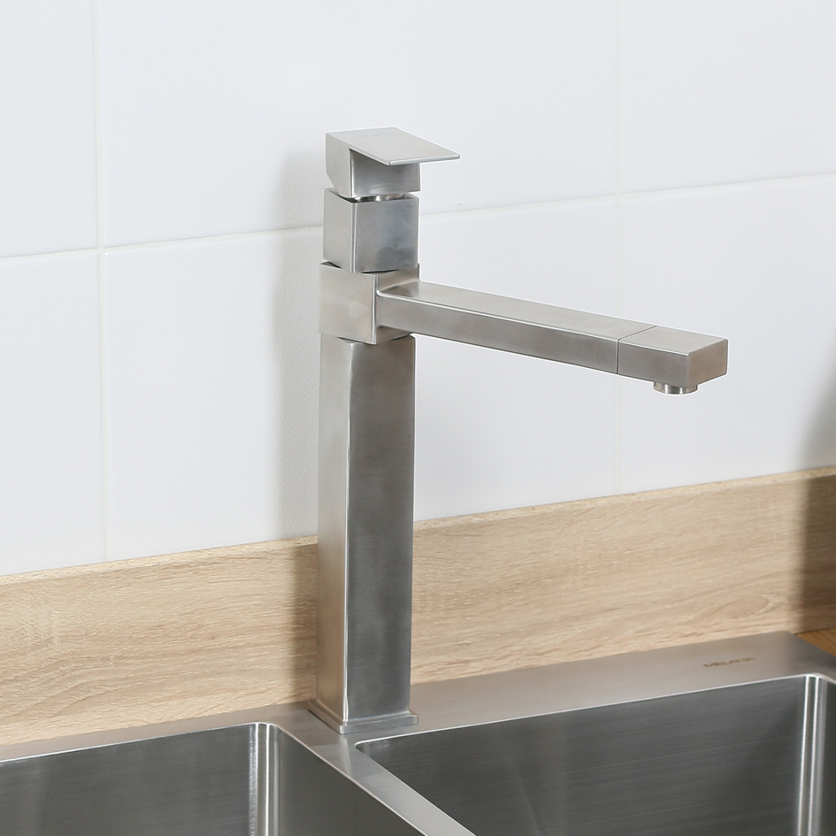 Смеситель д/кухни MELANA-610203 Cubo нерж.сталь, однорычажный, сатин, литой излив