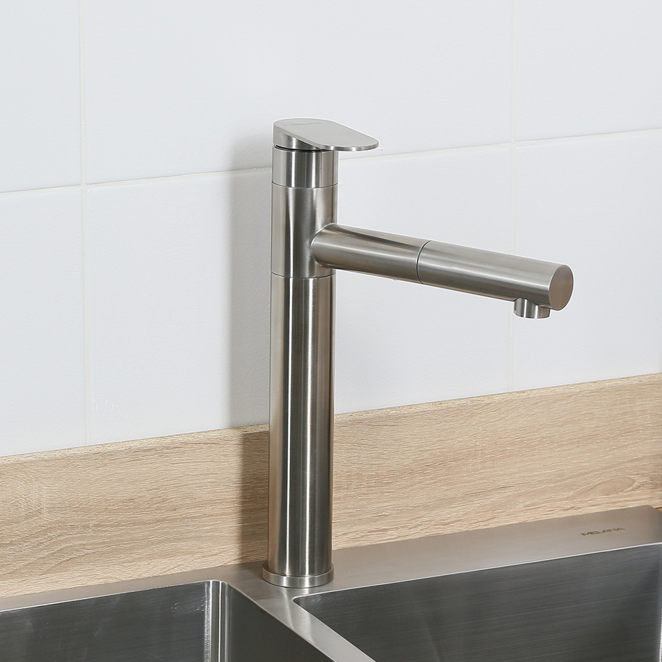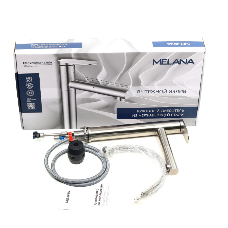 Смеситель д/кухни MELANA-610303 Stello нерж.сталь, однорычажный, сатин, вытяжной излив