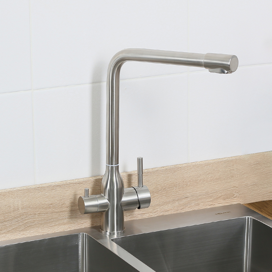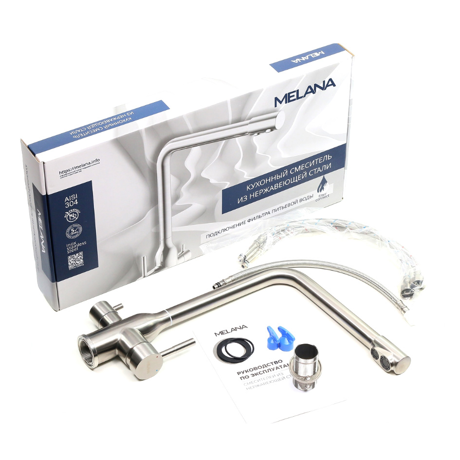 Смеситель д/кухни MELANA-610304 Stello нерж.сталь, с переключателем на фильтр, однорычажный, сатин