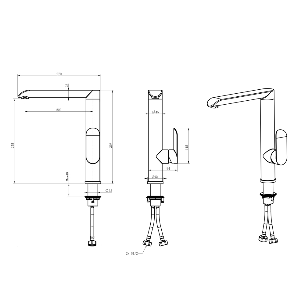 Смеситель д/кухни MELANA-610603 Paola Hi-tech нерж.сталь, однорычажный, сатин, литой излив