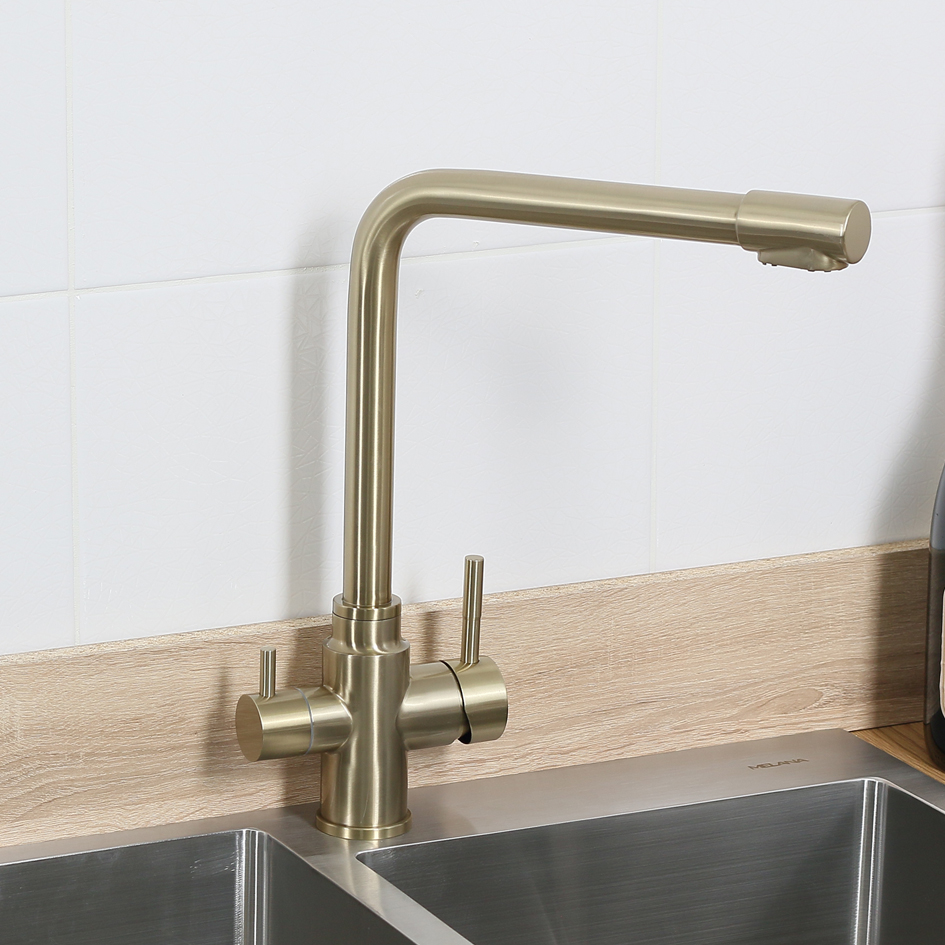 Смеситель д/кухни MELANA-F9505HG нерж.сталь, с переключателем на фильтр, однорычажный, золото