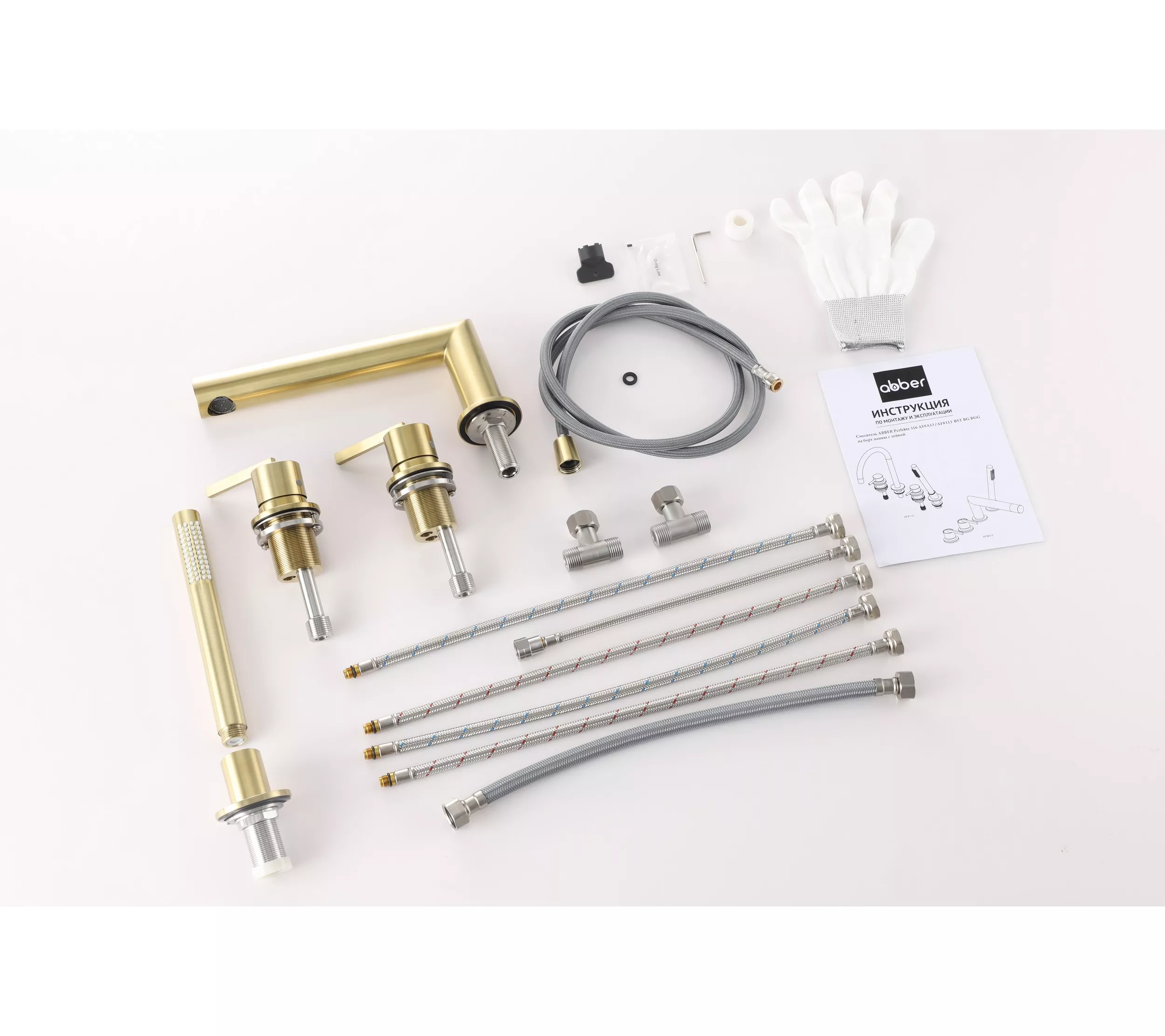Смеситель ABBER Perfekte 316 AF8A13BG на борт ванны с лейкой, золото брашированное