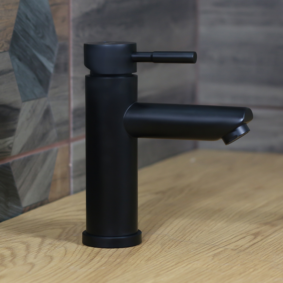 Смеситель д/ум MELANA-610101B Tondo нерж.сталь, однорычажный, черный, литой излив