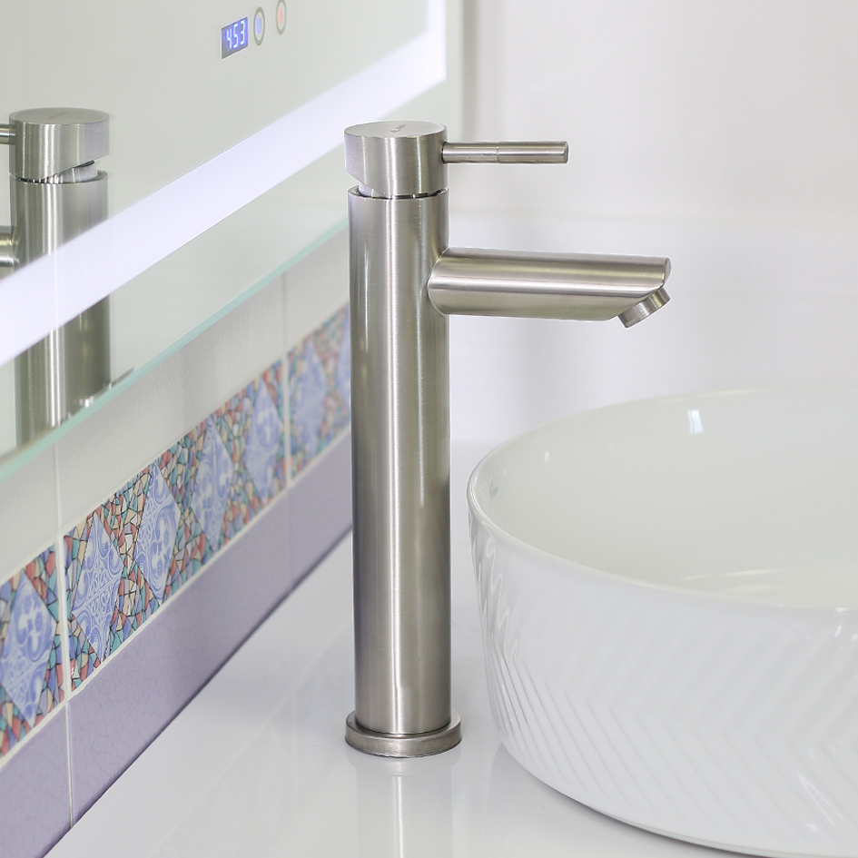 Смеситель д/ум MELANA-610102 Tondo нерж.сталь, однорычажный, сатин, литой излив