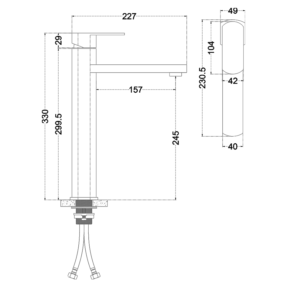 Смеситель д/ум MELANA-610302 Stello нерж.сталь, однорычажный, сатин, литой излив