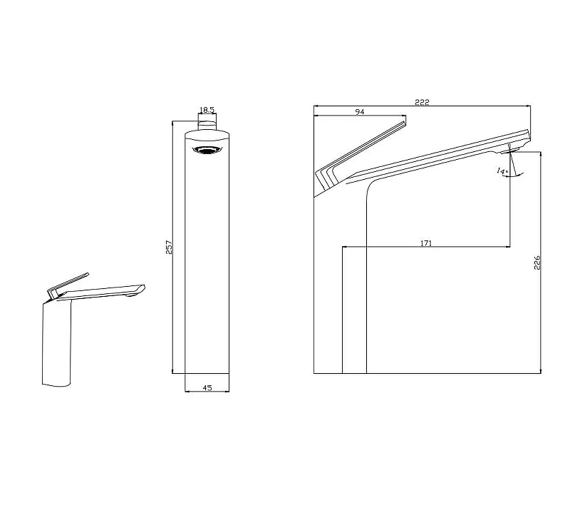 • Длина излива 171 мм
