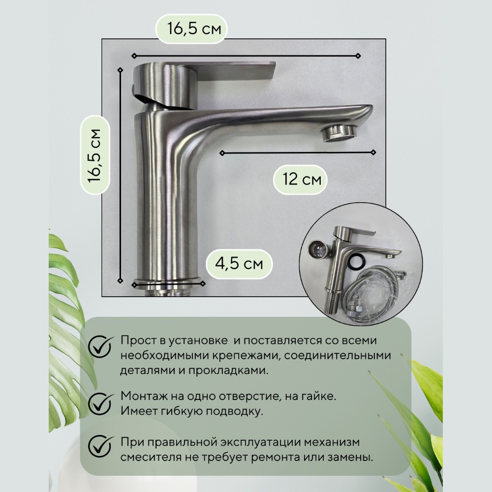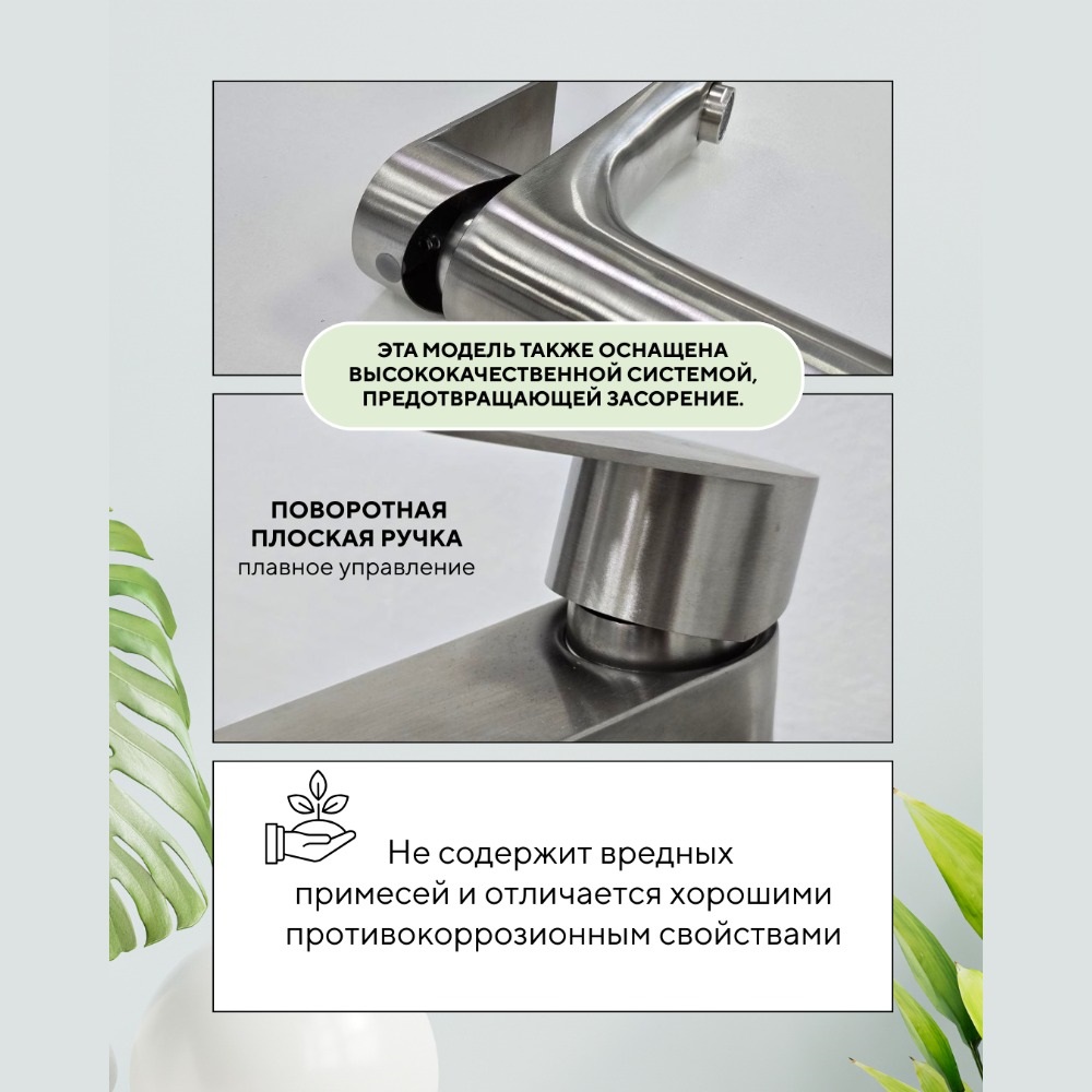 Смеситель для раковины ACWEN выполнен из пищевой нержавеющей стали , которая не содержит вредных примесей и отличается хорошими противокоррозионным свойствами, а также имеет длительный срок эксплуатации. Монтаж на одно отверстие, на гайке. Гибкая подводка. С аэратором.