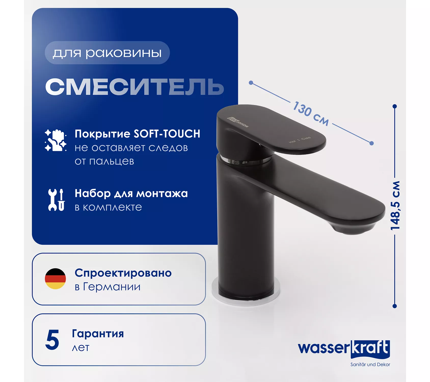 Покрытие Soft touch придает осязаемую мягкость изделиям, благодаря чему к ним хочется прикасаться снова и снова.Корпус смесителей произведен из высококачественной латуни с содержанием меди не менее 59%. Латунь является наилучшим материалом для изготовления корпуса смесителей, характеризуется долговечностью и прочностью.
