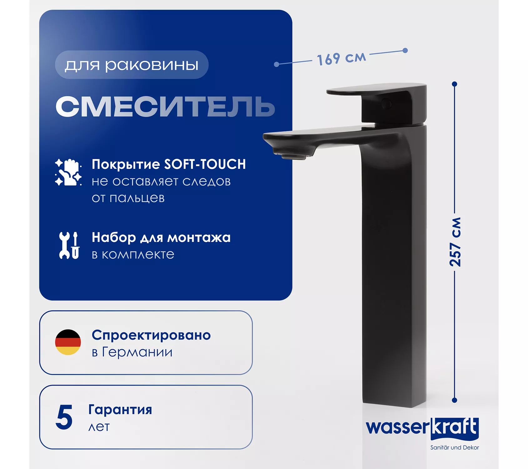 Покрытие Soft touch придает осязаемую мягкость изделиям, благодаря чему к ним хочется прикасаться снова и снова.Корпус смесителей произведен из высококачественной латуни с содержанием меди не менее 59%. Латунь является наилучшим материалом для изготовления корпуса смесителей, характеризуется долговечностью и прочностью. Смесители имеют покрытие Soft-touch. Оно придает осязаемую мягкость изделиям, благодаря чему к ним хочется прикасаться снова и снова. В изделиях используются керамические картриджи 35 мм, Sedal (Испания), выдерживает 500 000 рабочих циклов (открытий / закрытий). Смесители комплектуются встроенными пластиковыми аэраторами Neoperl HONEYCOMB для равномерного распределения струи. Аэраторы Neoperl HONEYCOMB отличаются прочностью, не подвержены разрушению и образованию известковых отложений. В комплекте гибкая, стальная подводка G1/2, Sedal (Испания).