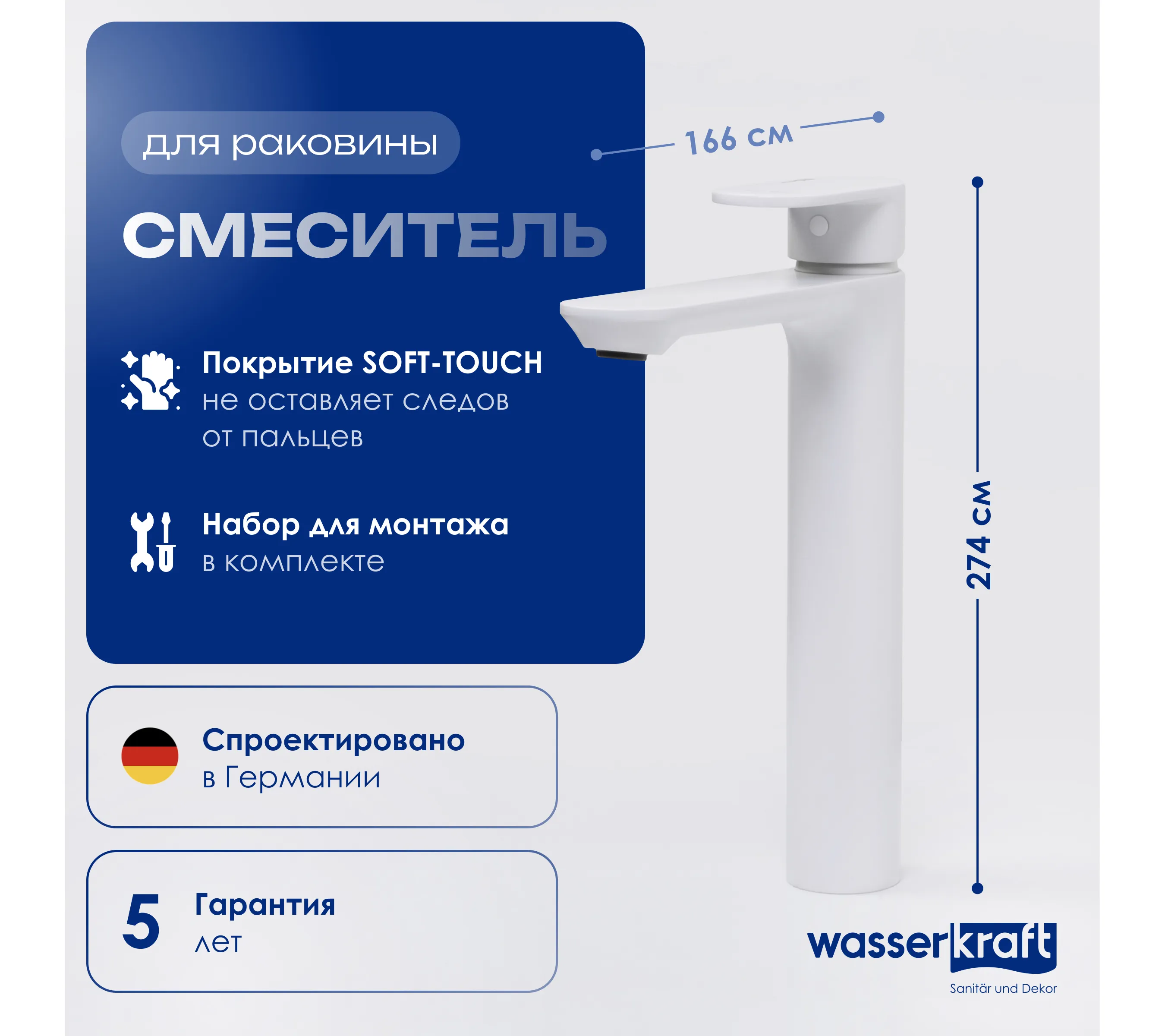 Аэратор можно снять и почистить, для этого его необходимо просто открутить. К некоторым смесителям входит в комплект специальный ключ для аэратора. Стандарт качества Смесители WasserKRAFT соответствуют российским и европейским стандартам, что подтверждено добровольным сертификатом РСТ (№ РОСС DE.AE95.H01093).
