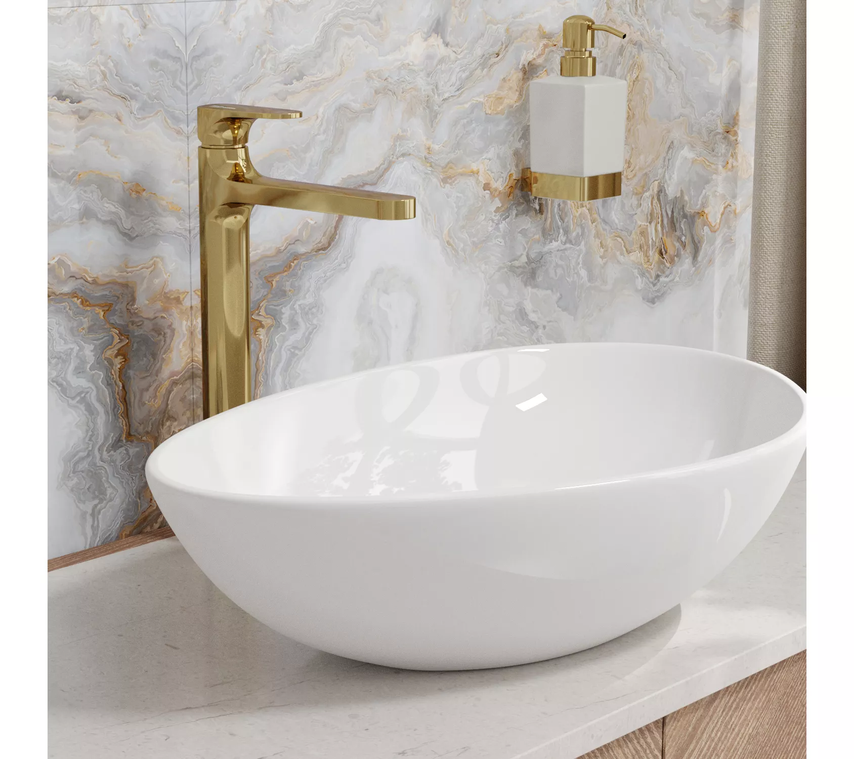 PVD-покрытие «глянцевое золото».Покрытие помогает защитить поверхность изделий от воздействия внешней среды. Для ухода за изделиями WasserKRAFT достаточно теплой воды, мыльного раствора и сухого полотенца. Технология нанесения.Очищенное заранее изделие, помещается в вакуум, где с помощью конденсации пара наносится покрытие. При этом, конденсат пара содержит частицы необходимых металлов для получения нужного цвета. Далее наносится лак и изделие отправляется сушиться.
