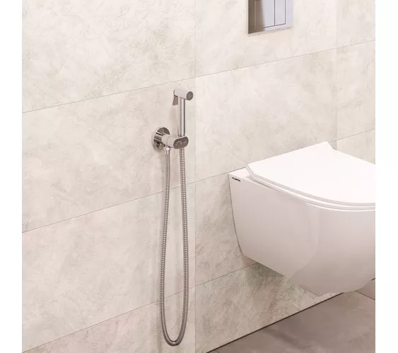Гигиенический душ — это компактная альтернатива биде. Если у вас маленький туалет, где нет возможности установить еще одну сантехническую конструкцию, на выручку приходит данный аксессуар. Он выполнен в виде душевой лейки с клавишей (кнопкой) и шланга, которая фиксируется на смесителе. Смеситель состоит из высококачественной латуни и встраивается в стену. Устанавливается рядом с унитазом и помогает поддерживать личную гигиену.