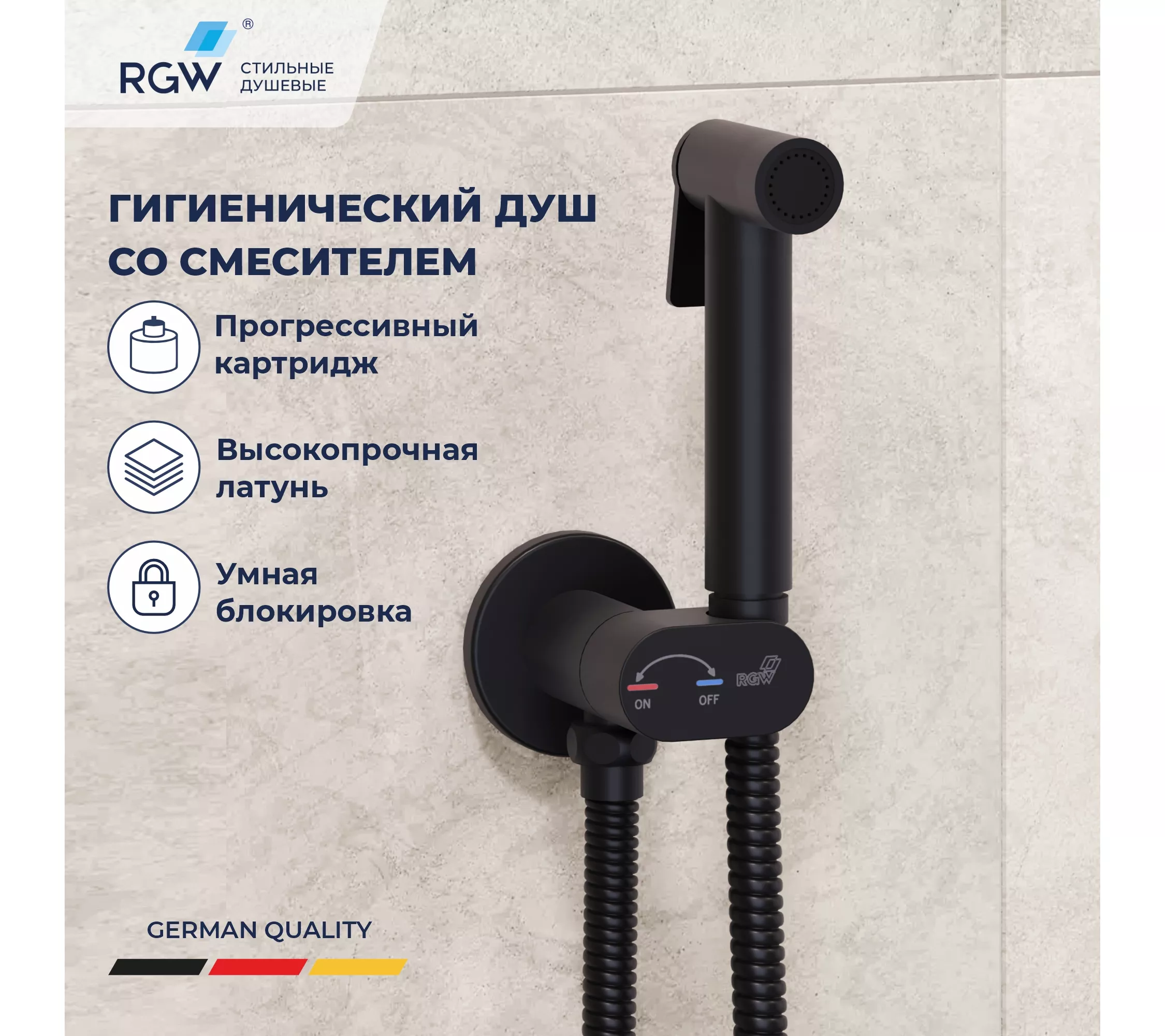 Самый миниатюрный комплект Гигиенического душа золотого цвета со смесителем и краном держателем лейки, скрытого монтажа RGW SP-213, с прогрессивным поворотным картриджем, оснащён функцией «Умная блокировка». Гигиенический душ со смесителем круглой формы, инсталляционный, встройка в стену RGW SP-213— это сантехническое оборудование, придуманное для соблюдения личной гигиены. Обычно его устанавливают возле унитаза, тем самым в небольших пространствах ванных комнат он заменяет биде. Первое, что приходит на ум, когда слышите «Гигиенический душ для унитаза (гигдуш — в бытовом разговоре)» — это моментальная гигиена интимной зоны сразу после туалета без использования туалетной бумаги.