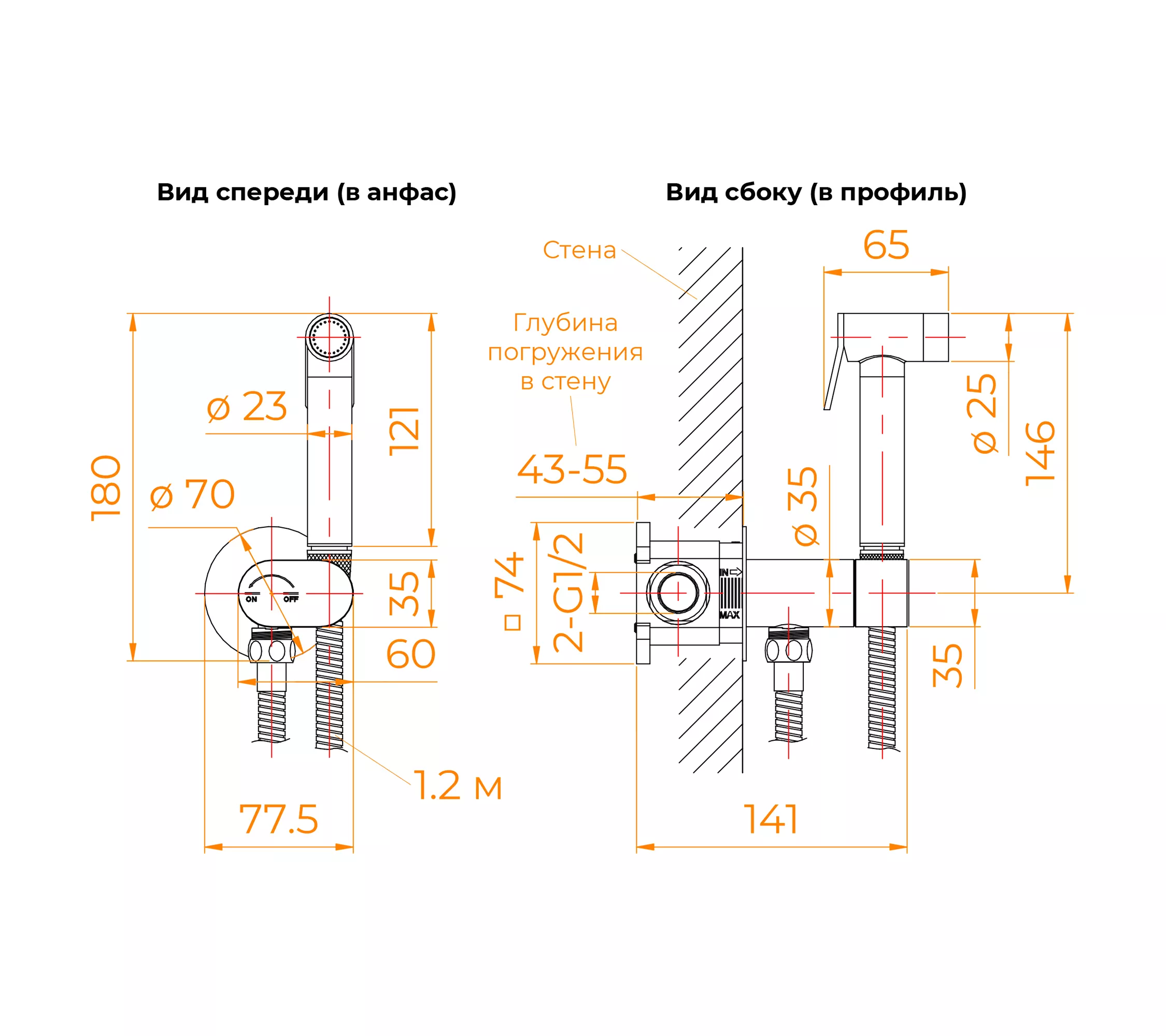 Шланг длиной 120 мм имеет защиту от заломов и перекручивания.