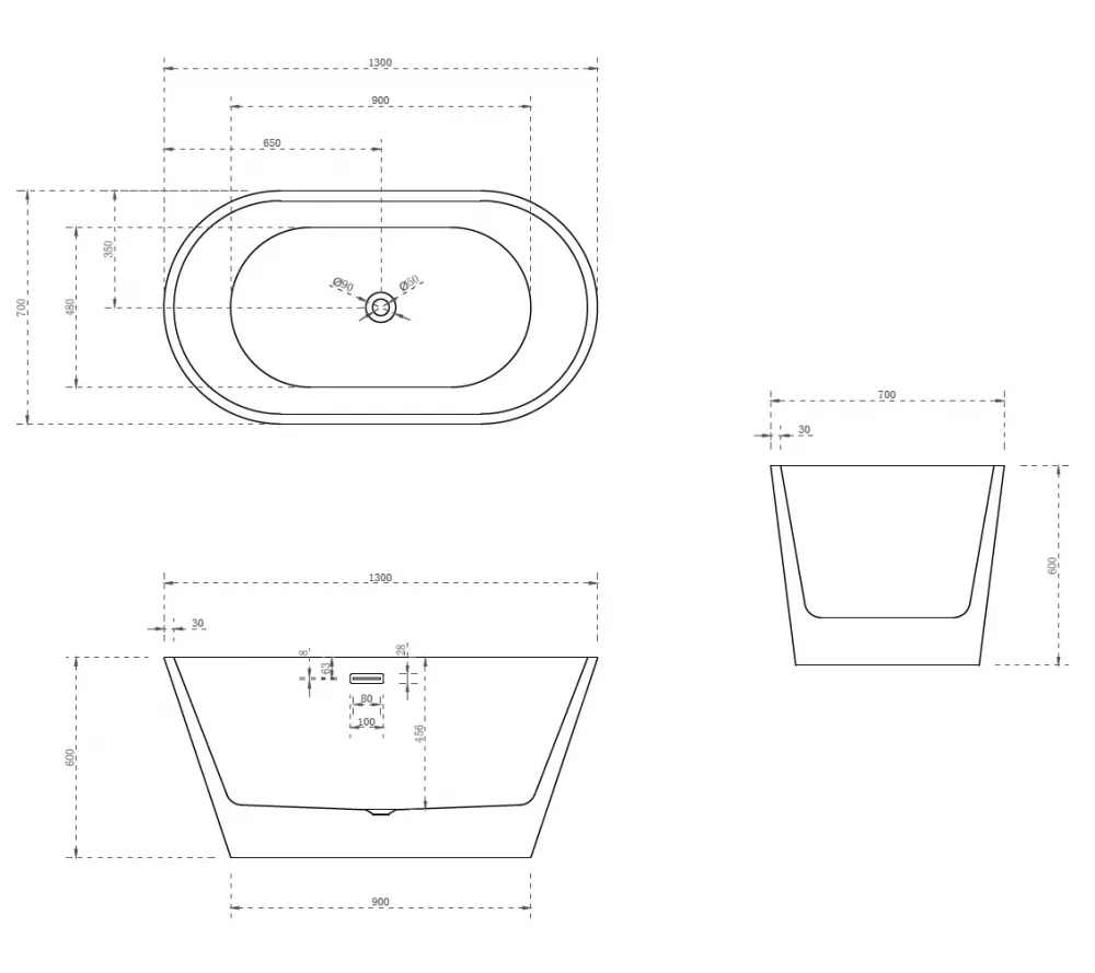 В комплекте: акриловая ванна, слив-перелив, стальной каркас, белый слив.