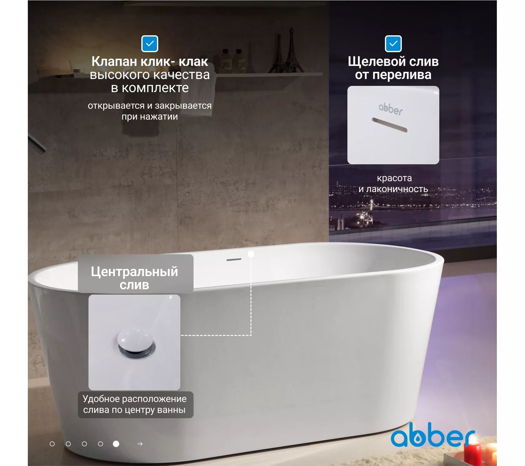 Акриловая ванна ABBER AB9203, Накладка на слив: есть хром Акриловая ванна ABBER AB9203, Накладка на слив: есть черная