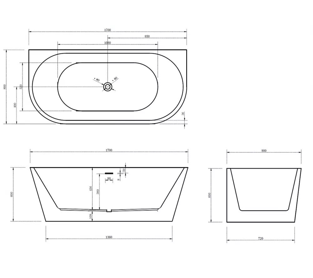 Акриловая ванна ABBER AB9216-1.7R 170х80