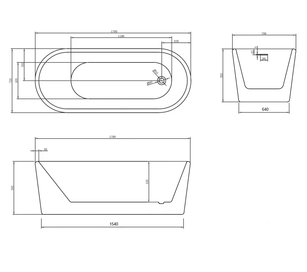 В комплекте: акриловая ванна, слив-перелив, стальной каркас, белый слив.