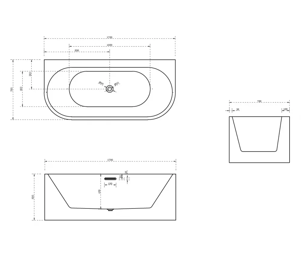 В комплекте: акриловая ванна, слив-перелив, стальной каркас, белый слив.