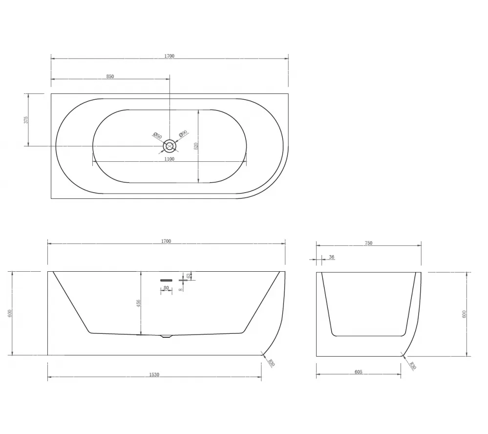 В комплекте: акриловая ванна, слив-перелив, стальной каркас, белый слив.