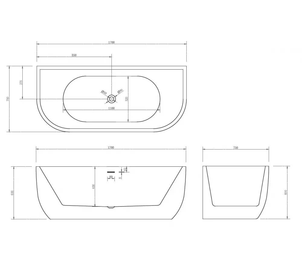 Акриловая ванна ABBER AB9316 170х75