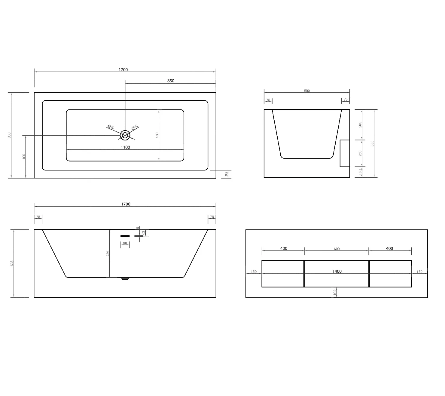 Акриловая ванна ABBER AB9339-1.7 170х80