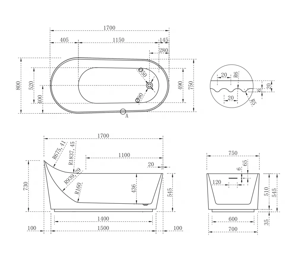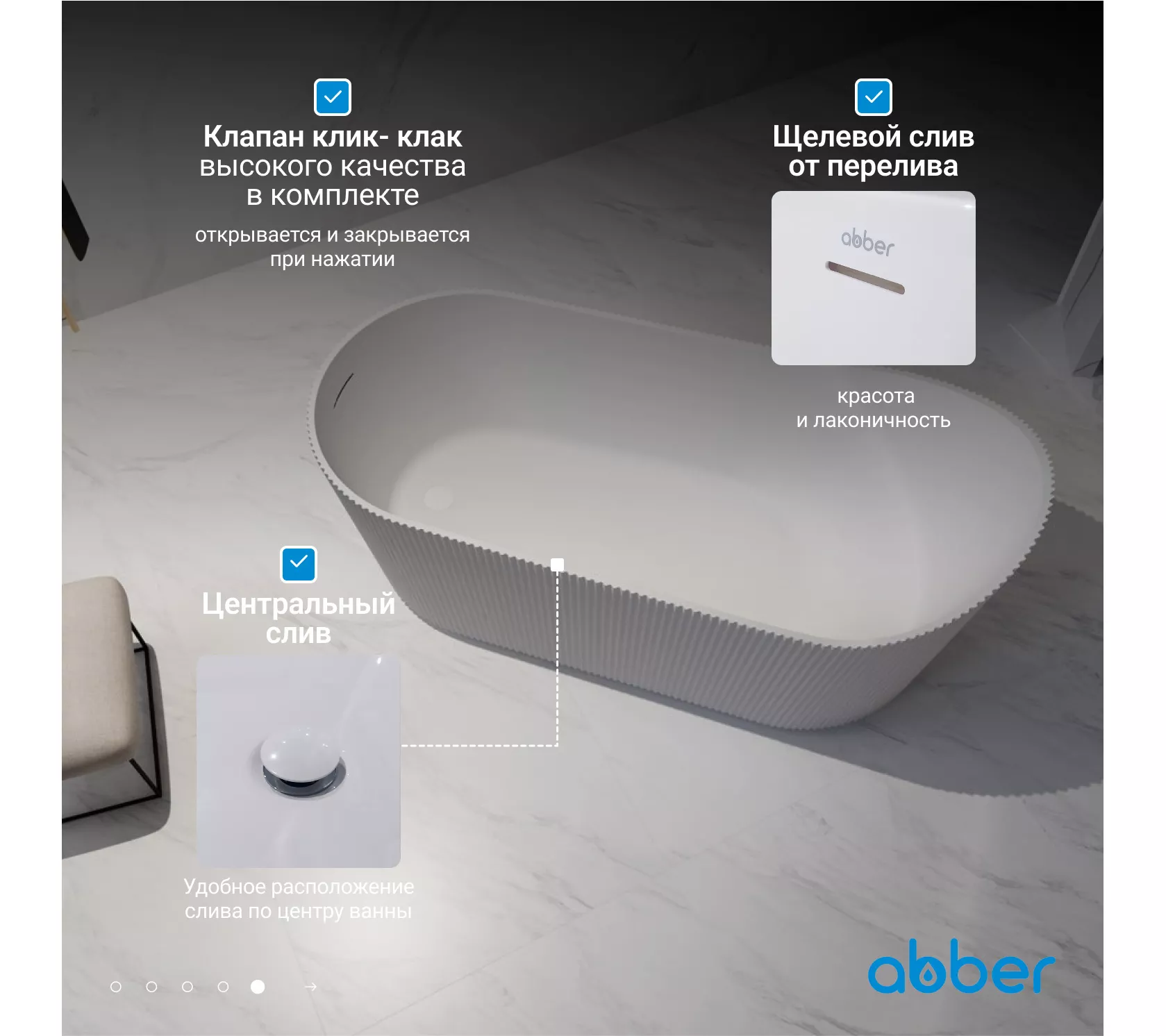 Акриловая ванна ABBER A170х80 белая матовая