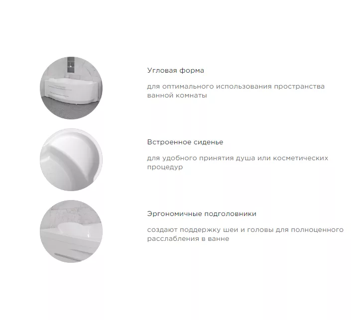 Асимметричная ванна с сиденьем Ирма – выбор для всех, кто привык окружать себя удобством и комфортом. Одинаково подходит семейным парам и любителям романтиков с пеной, а также семьям с детьми, которые обожают плескаться в просторной ванне. А угловая ванна с гидромассажем станет спасением для тех, кто много работает и чья жизнь связана с физическими и эмоциональными нагрузками.