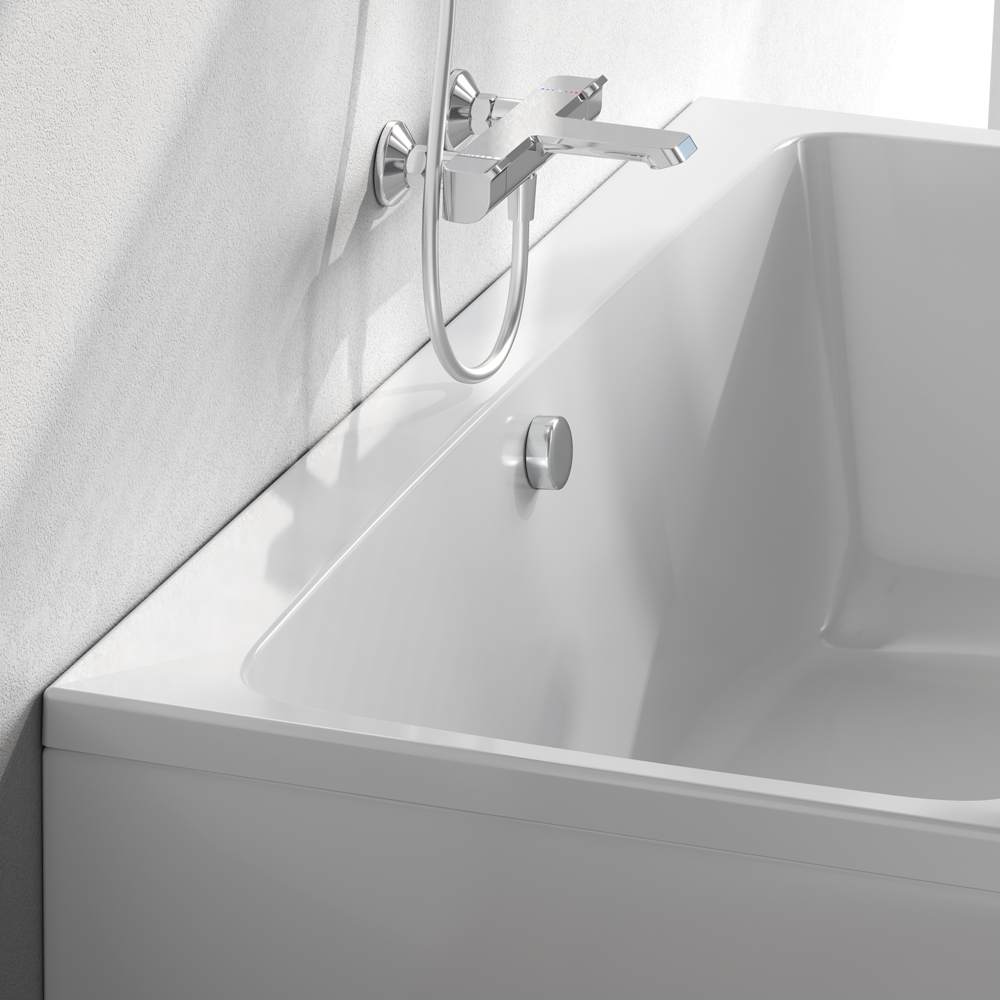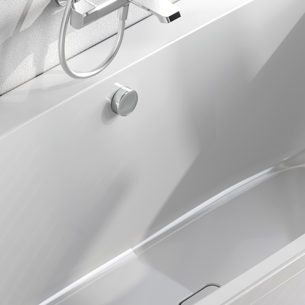 Широкий борт с одной стороны ванны добавляет дополнительное пространство для хранения. Теперь даже самое небольшое помещение может быть использовано оптимальным образом.