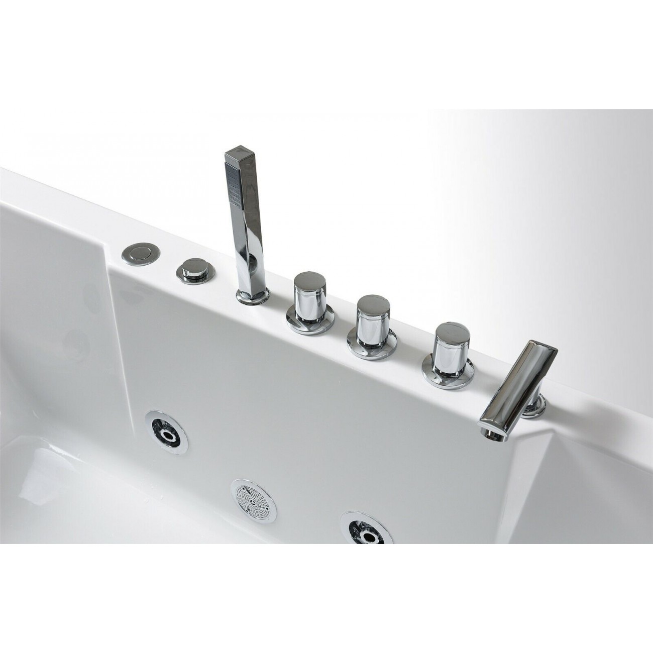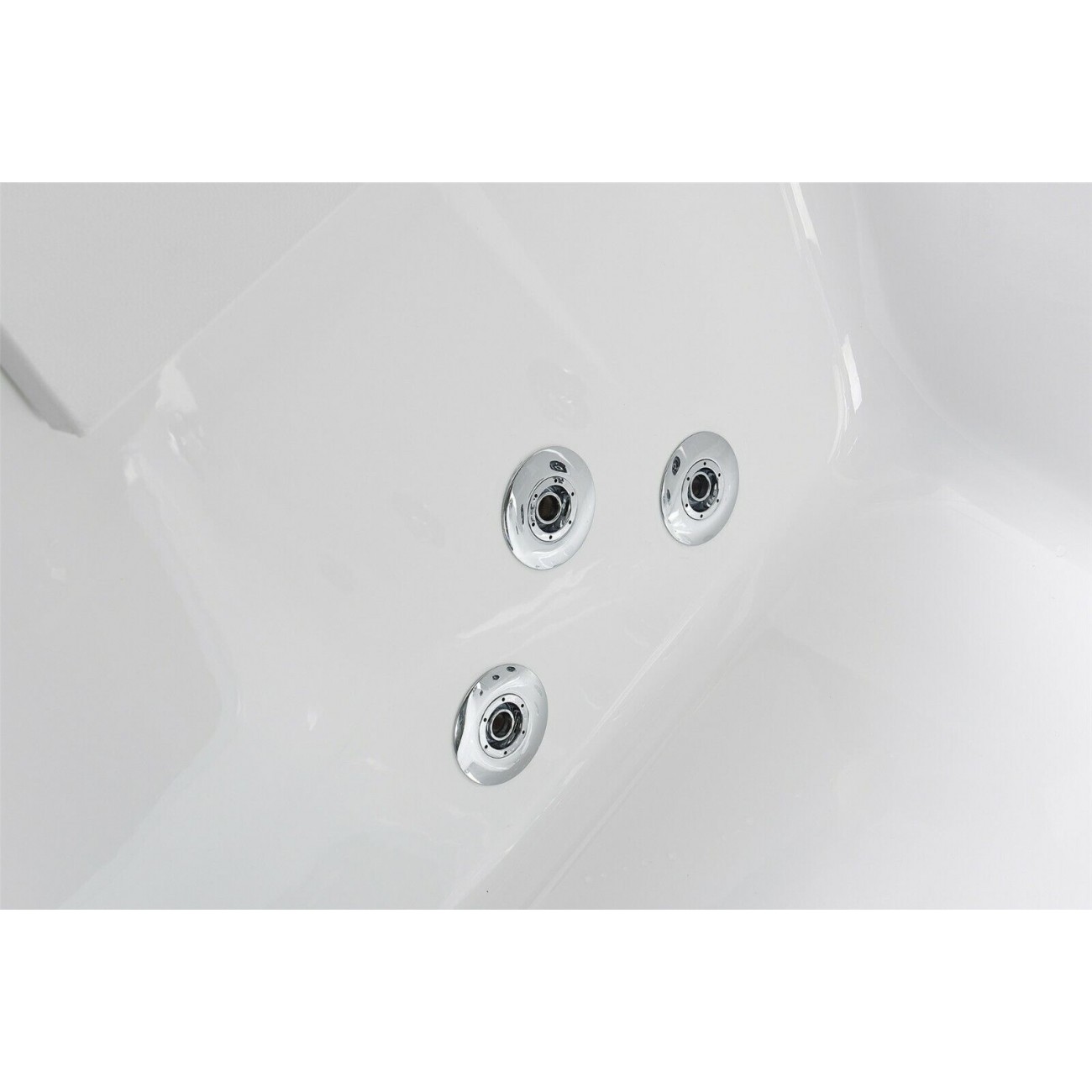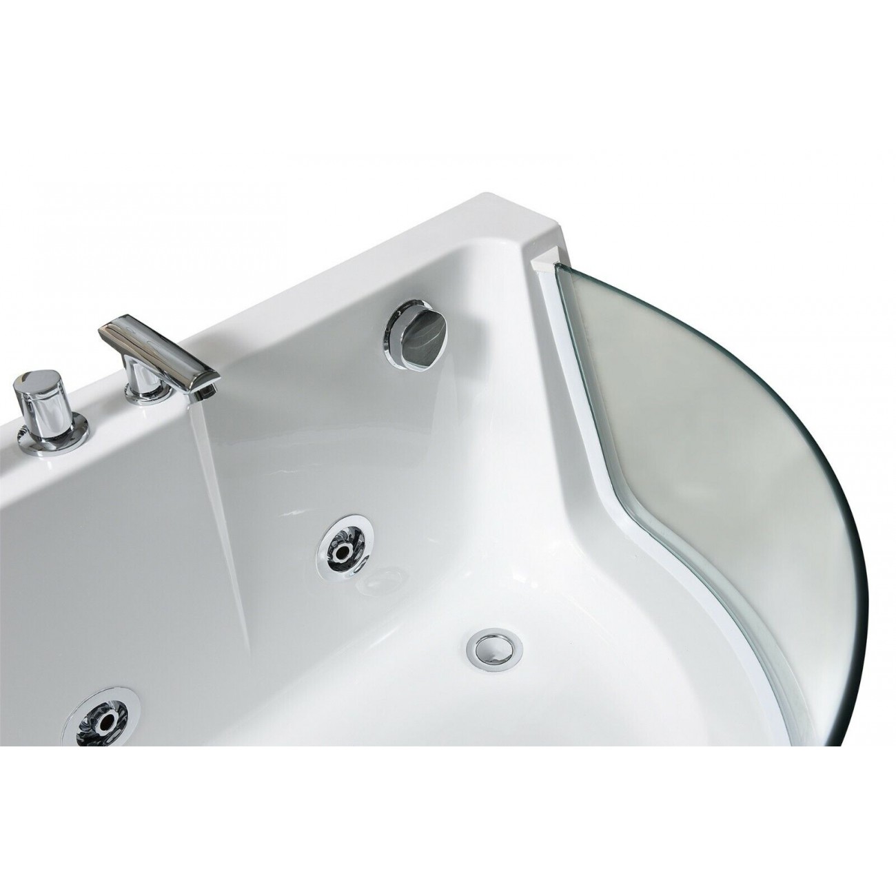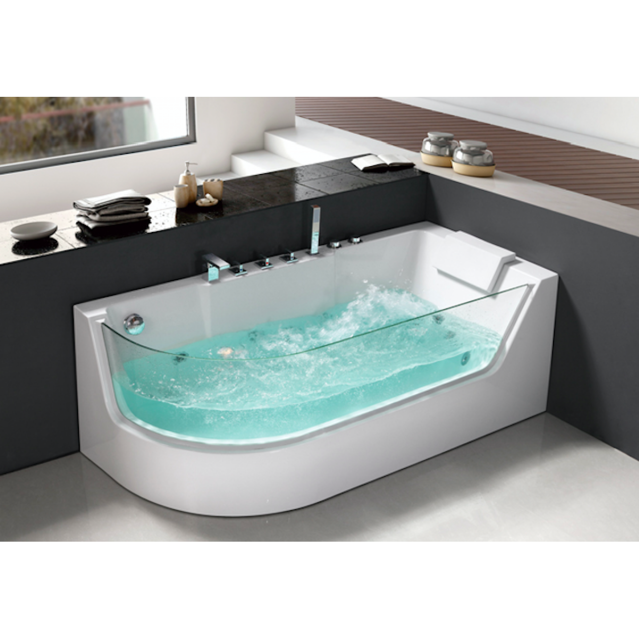 ванна с гидромассажем, асимметричная с аэро- и гидромассажем. В боковой стенке установлен многоцветный подводный фонарь. Также ванна снабжена системой дезинфекции. Форсунки раположены в ванне с учётом эргономики тела и способствуют максимальному охвату поверхности тела при работе аэро- и гидромассажных двигателей. Лицевая стенка изготовлена из 10мм закалённого стекла.