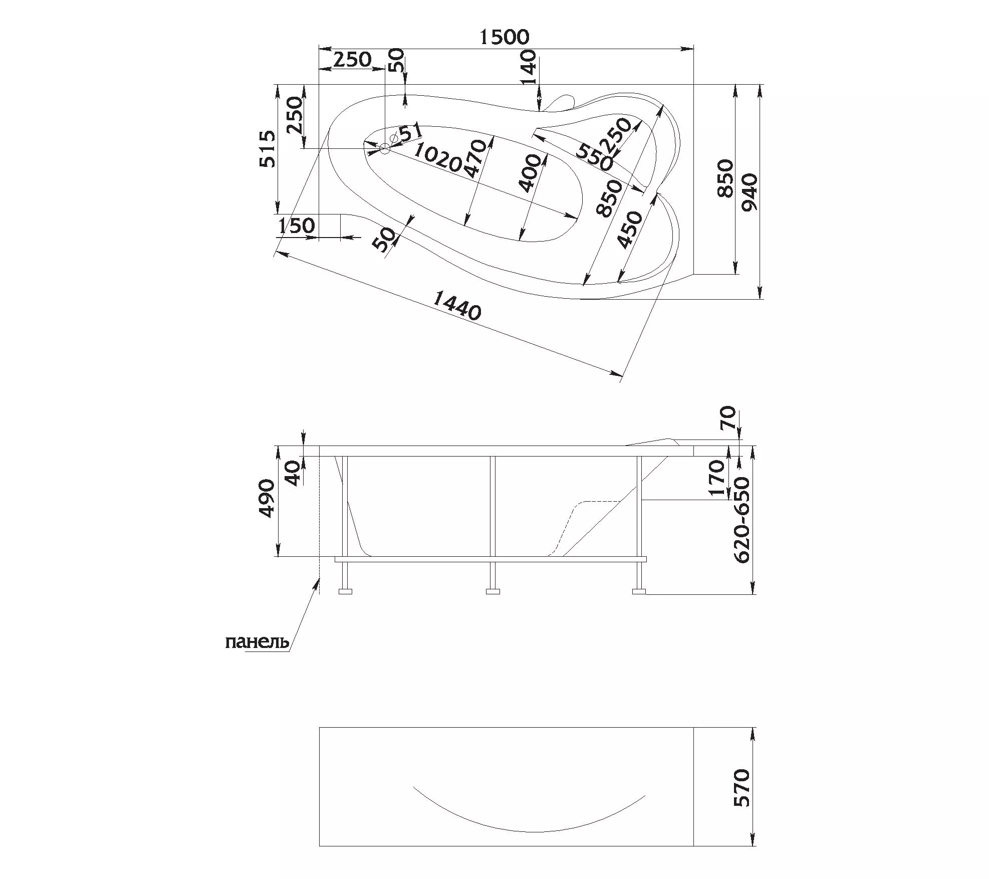 Минимальное количество для товара "Ванна 1Marka GRACIA (комплект) 170х100 R со встр. смесителем на борт ванны" 1.