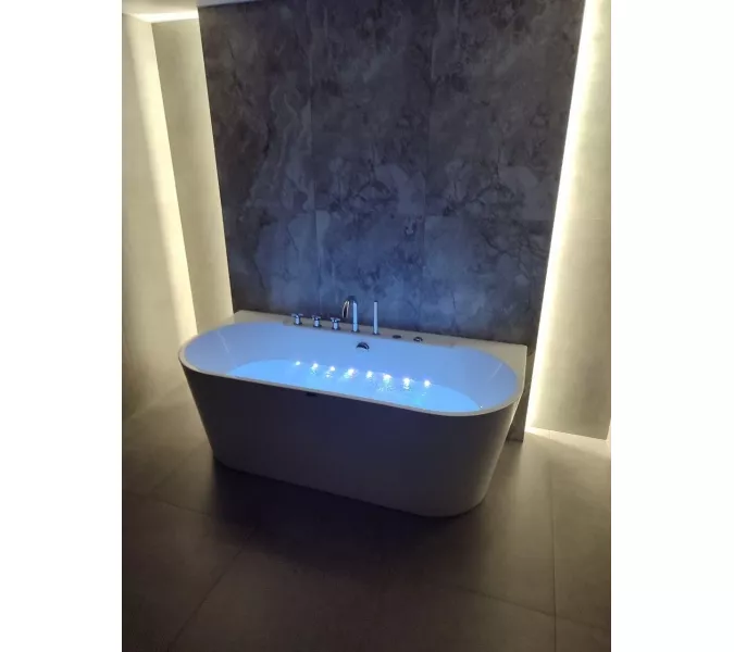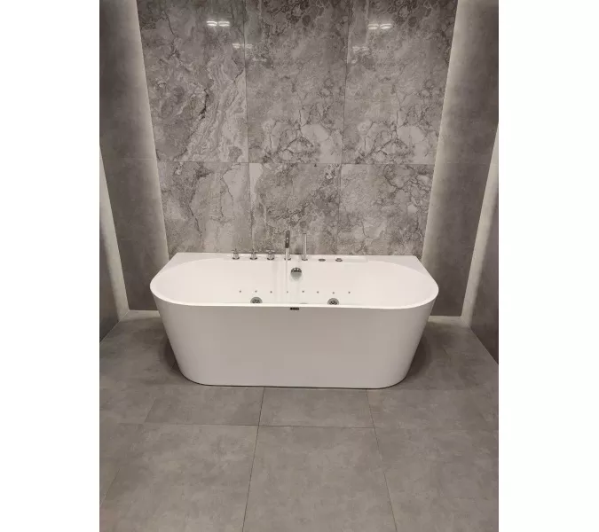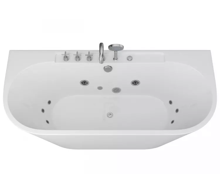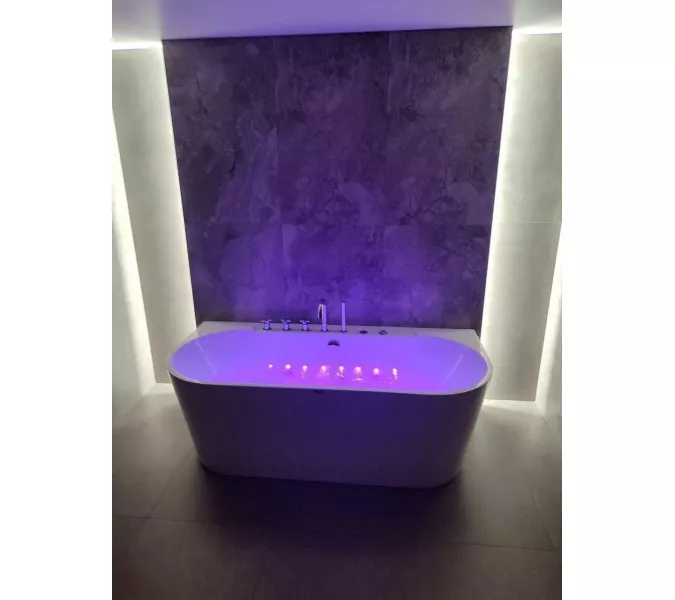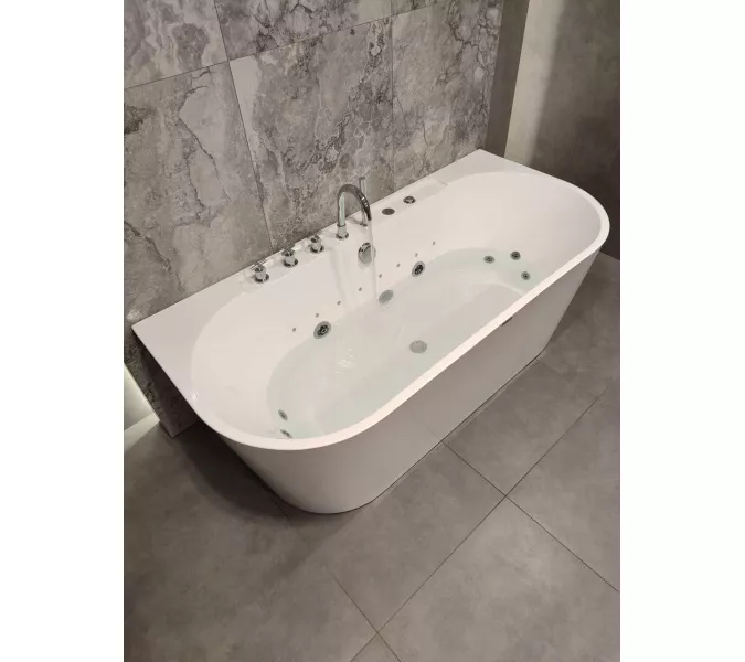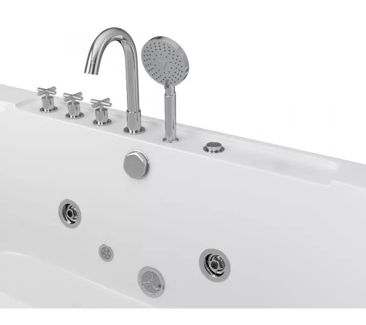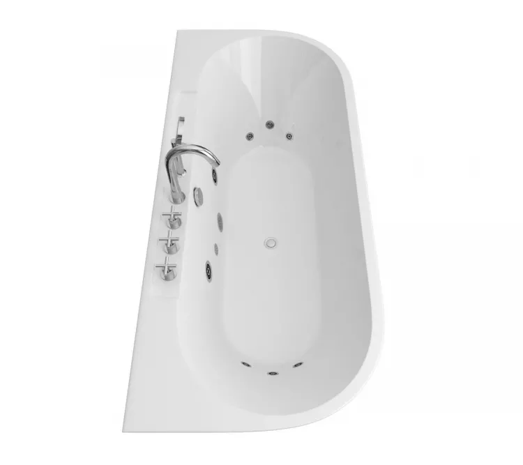 Форсунки расположены в ванне с учётом максимального массажа спины и поясницы и способствуют максимальному охвату поверхности тела при работе гидромассажного двигателя. Вся ванна сделана из литьевого акрила. Передний и боковые экраны бесшовные с ванной. Стоит система слива остатков воды из форсунков.