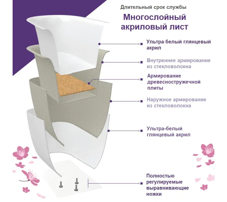 Тщательно отполированная и непористая поверхность обладает антибактериальными свойствами, поэтому вы можете быть уверены, что купаться в ней будет безопасно при каждом её использовании.Её также очень легко чистить, не прибегая к использованию агрессивных чистящих средств.