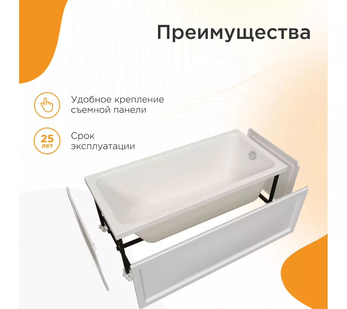 Основная цена указана за ванну, установленную на каркас с ножками, фронтальная панель