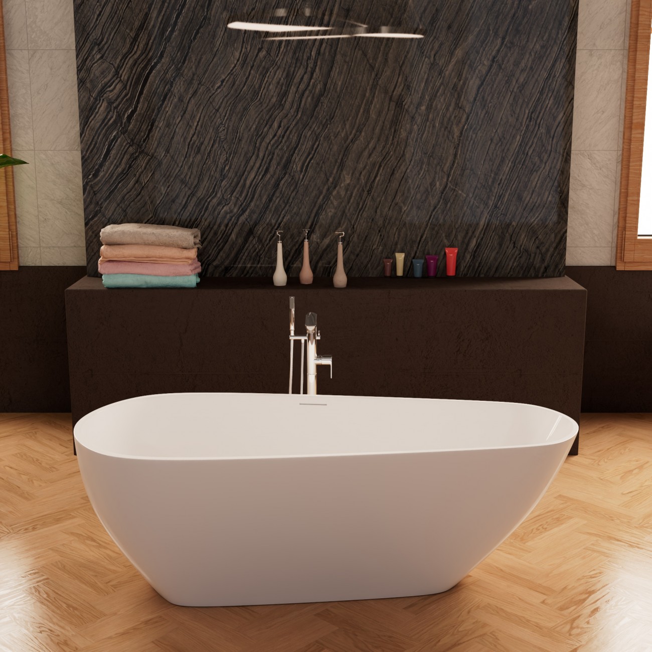 Погрузись в атмосферу удовольствия и расслабления!Самое поразительное в этой ванне - её внешний вид. Она выполнена в современном минималистическом стиле и станет особенно эффектным дополнением к любой ванной комнате. Отдельностоящая ванна предназначена для установки в любом месте. Вы можете поставить её в угол, прислонить к стене или даже расположить в центре комнаты, чтобы она служила центральным элементом пространства. Кроме того, она имеет бесшовные соединения корпуса, благодаря чему эта ванна выглядит так, как будто она представляет собой единое целое. Ванна Frank изготовлена из высококачественного акрила, очень хорошо сохраняет тепло благодаря конструкции с двойными стенками. Тщательно отполированная и непористая поверхность обладает антибактериальными свойствами, поэтому вы можете быть уверены, что купаться в ней будет безопасно при каждом её использовании. Её также очень легко чистить, не прибегая к использованию агрессивных чистящих средств. Слив перелив: щелевидныйСлив: сифон с гидрозатвором (с площадкой)Колба сифона: клик-клак