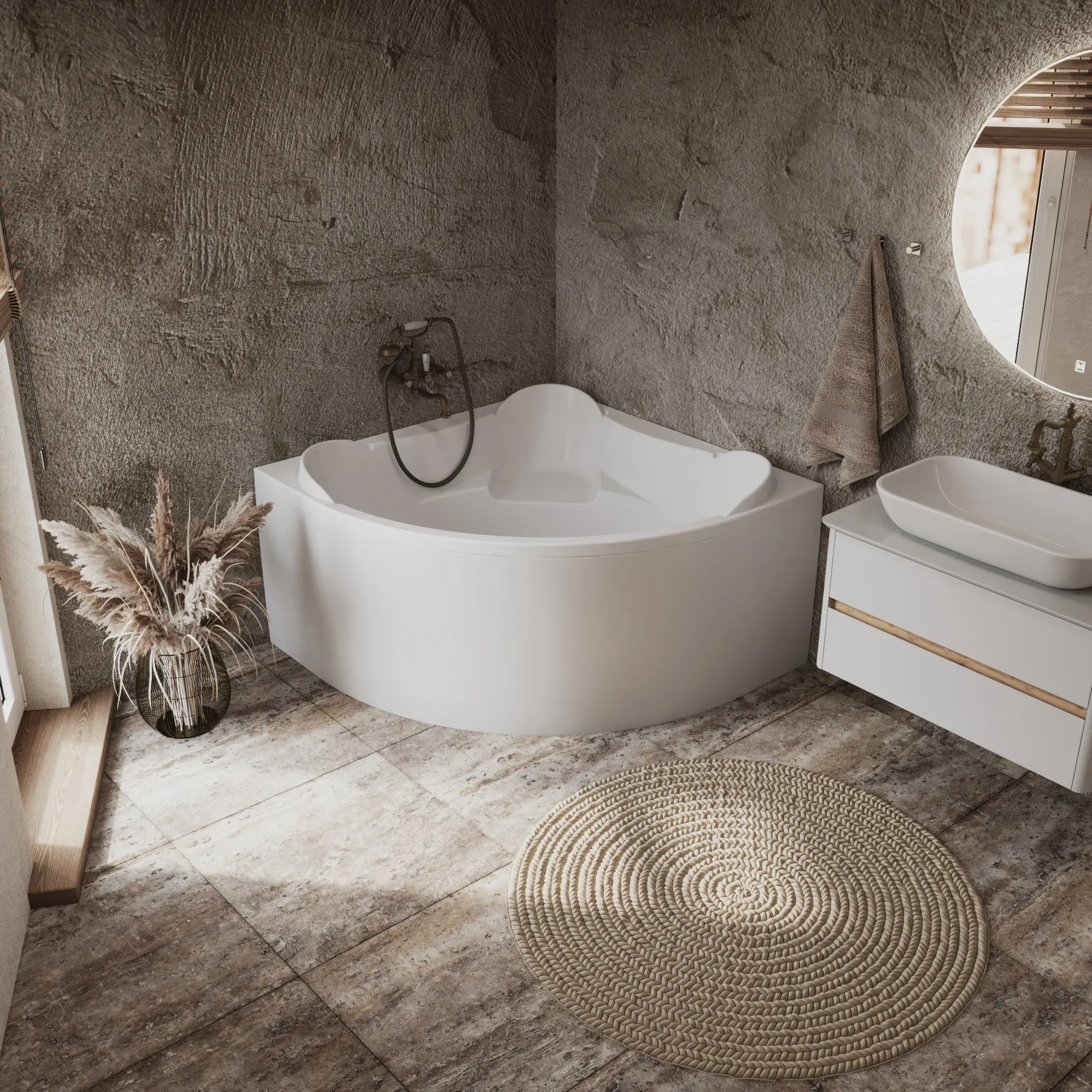 Угловая акриловая ванна размером 120x120 см — идеальный вариант для стильного и функционального оформления современной ванной комнаты. Благодаря своему элегантному и сдержанному дизайну, она подчеркнёт изысканный вкус владельца и обеспечит максимальный комфорт во время водных процедур.