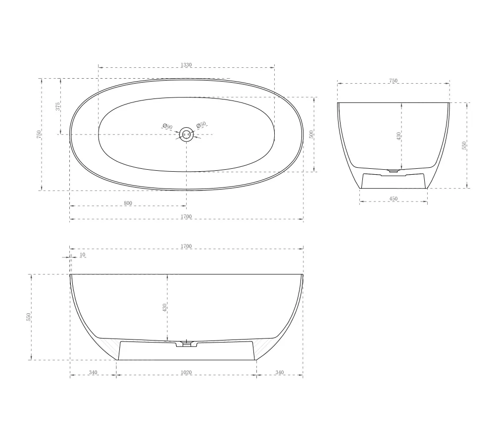 Карбоновая ванна ABBER Karbon AK9001-1.7 170х75