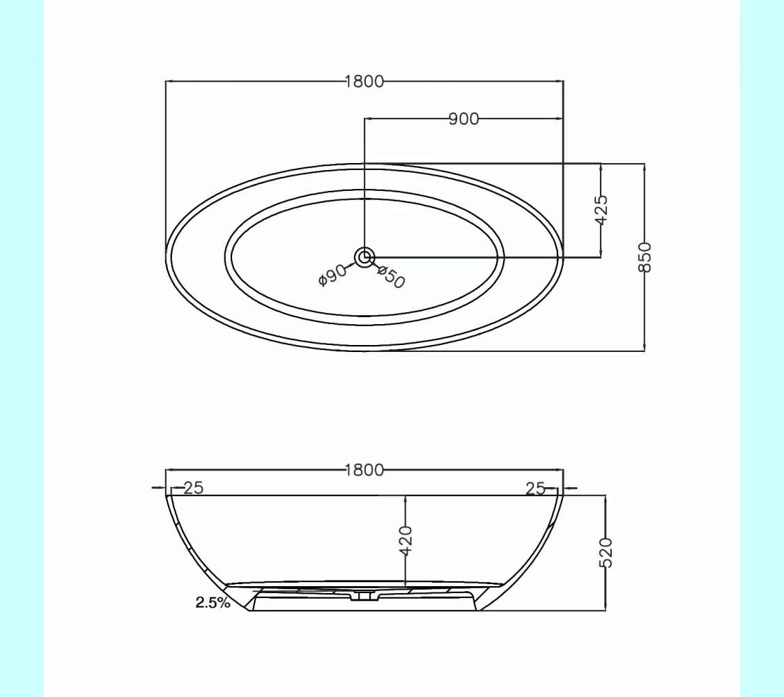 Ванна из полиэфирной смолы ABBER Kristall AT9702Aquamarin бирюзовая 180*85 прозрачная