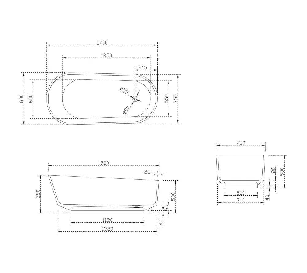 Ванна из полиэфирной смолы ABBER Kristall AT9706Aquamarin бирюзовая 170х80 прозрачная