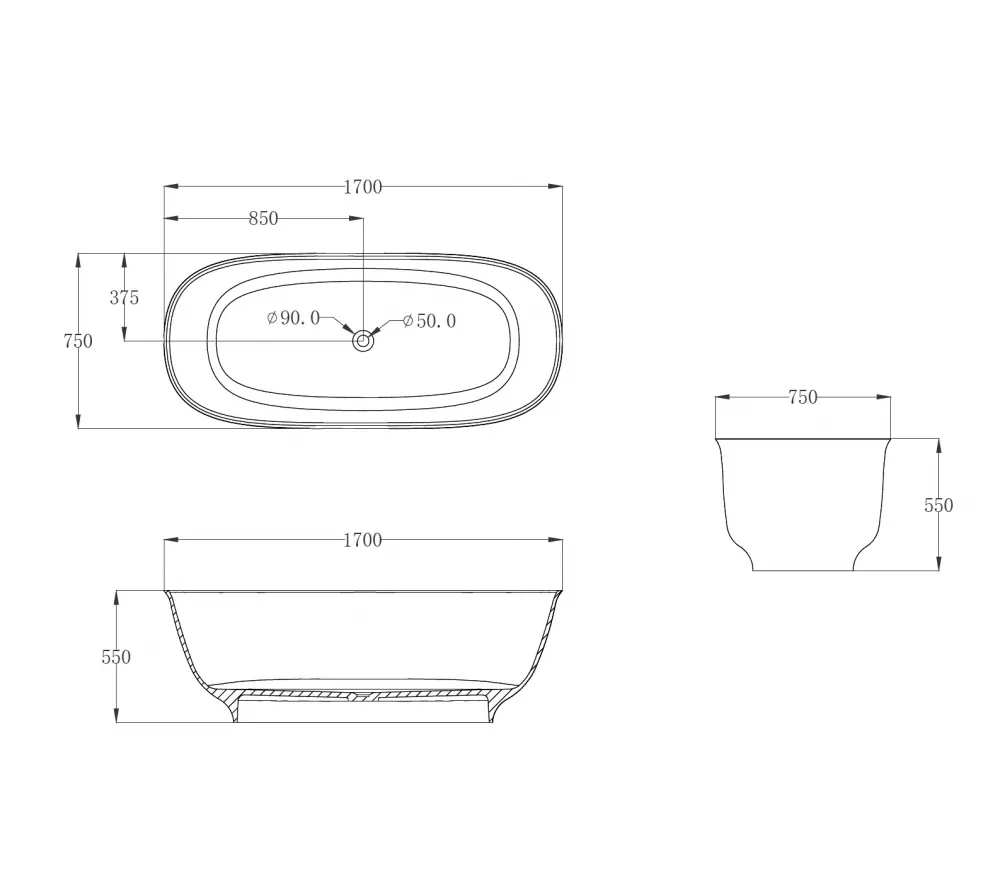 Ванна из полиэфирной смолы ABBER Kristall AT9707Aquamarin бирюзовая 170*75 прозрачная