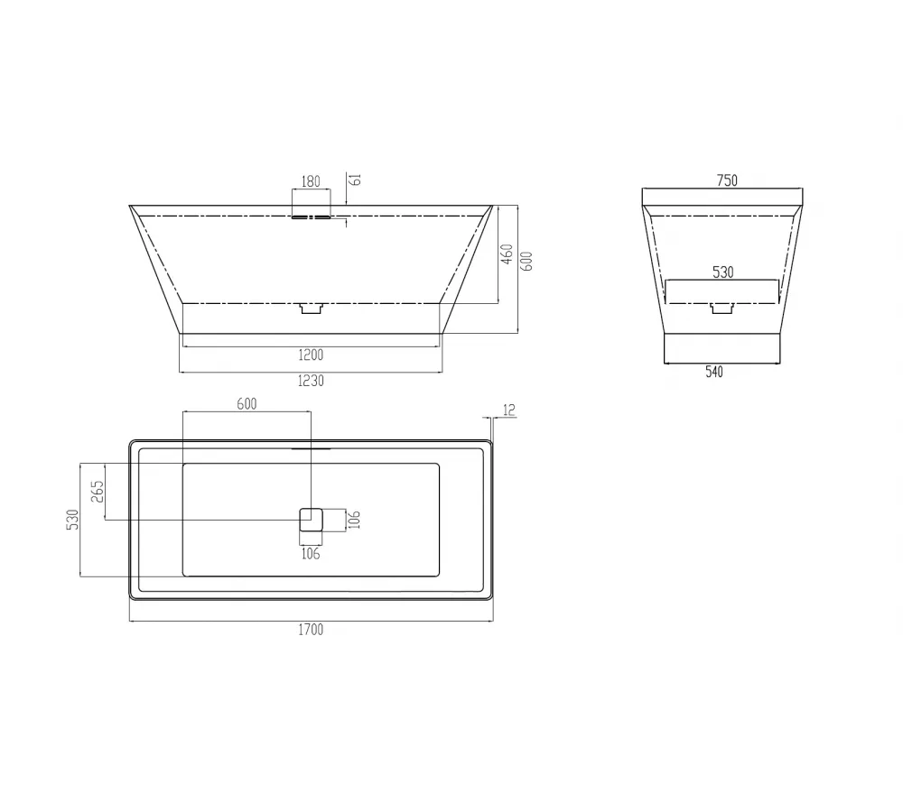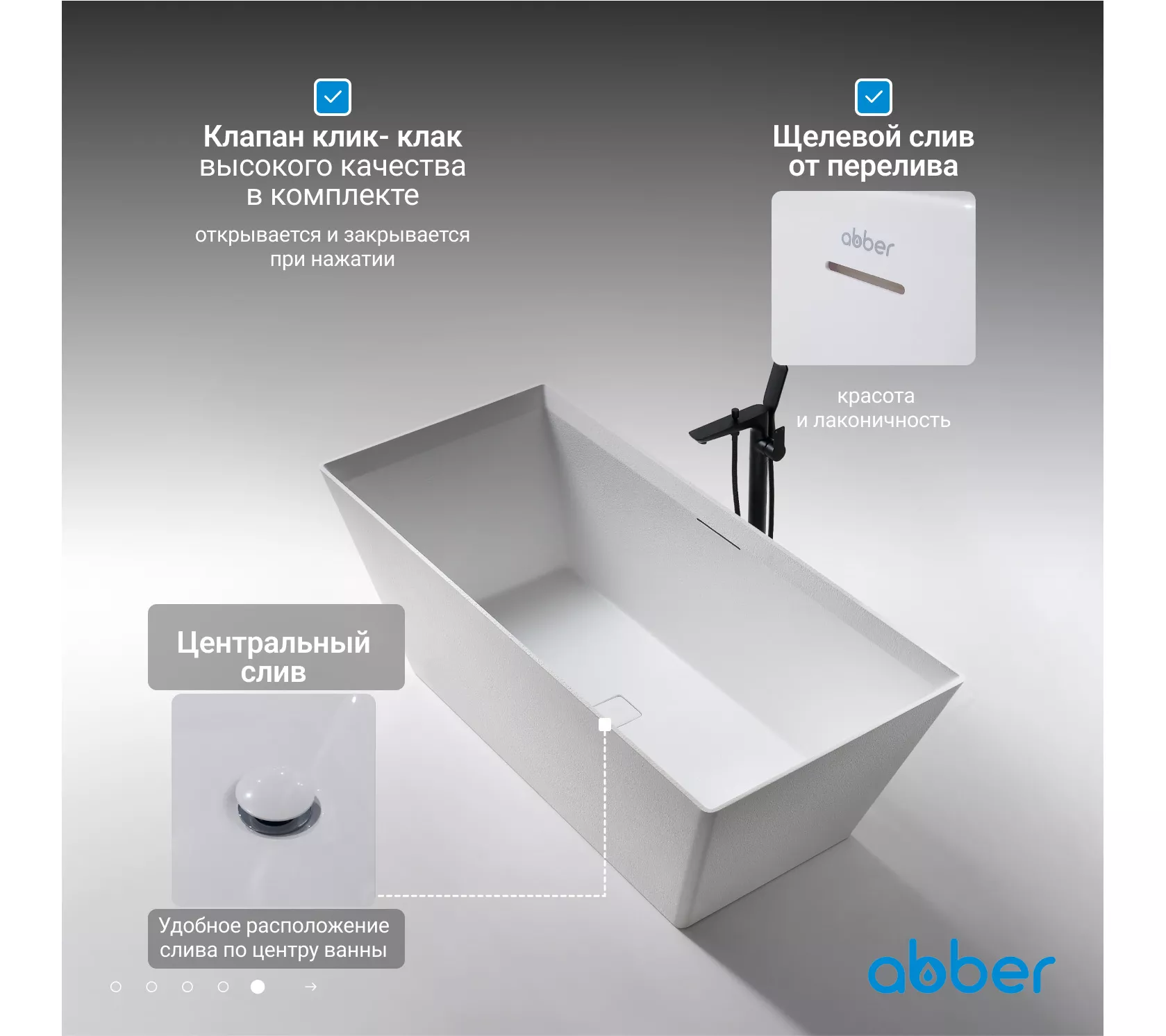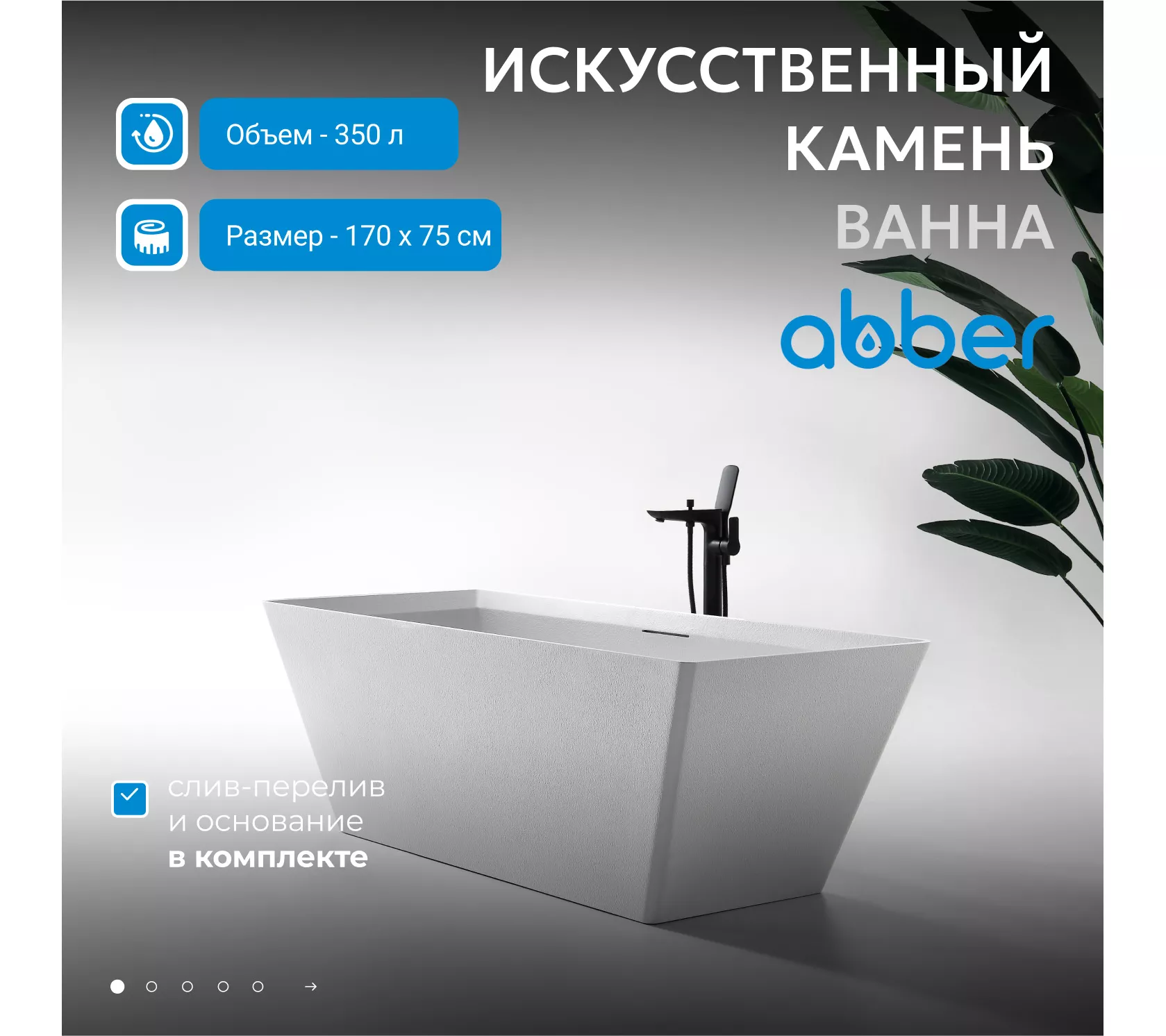 Ванна из искусственного камня ABBER Berlin AM9912 белая матовая 170*75
