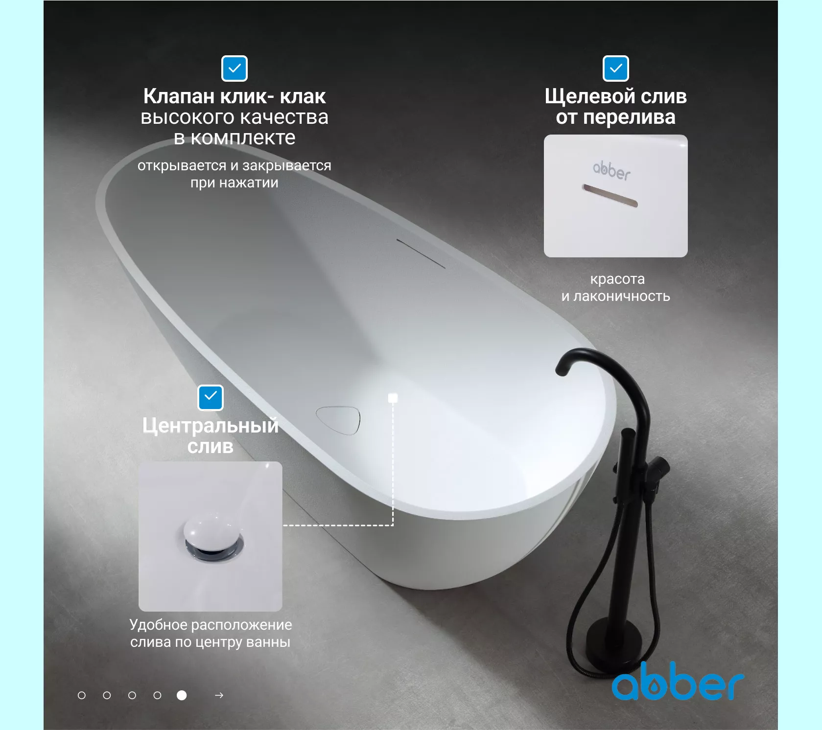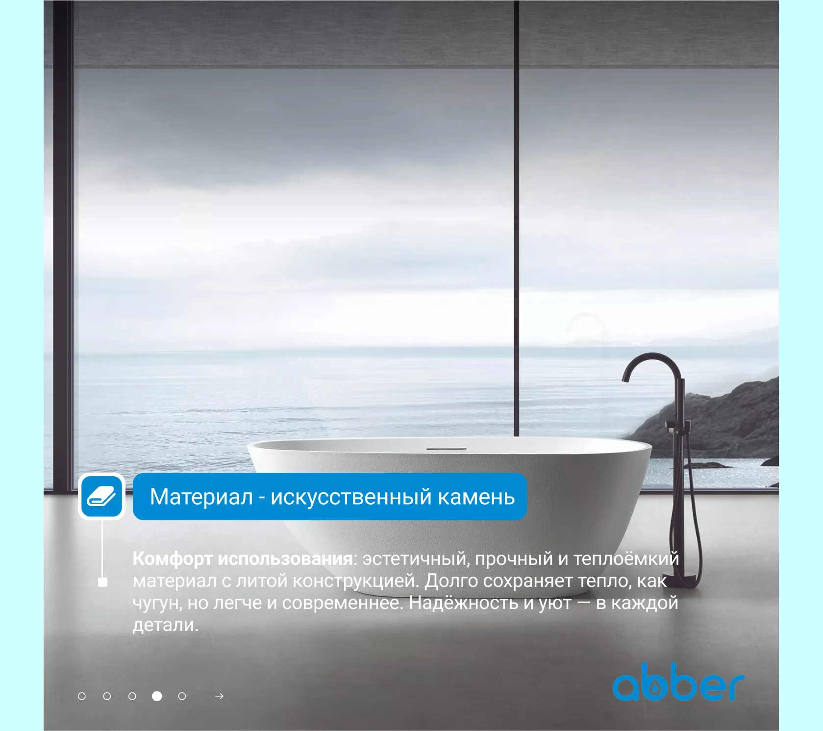 Ванна из искусственного камня ABBER Dortmund 170х75 белая матовая