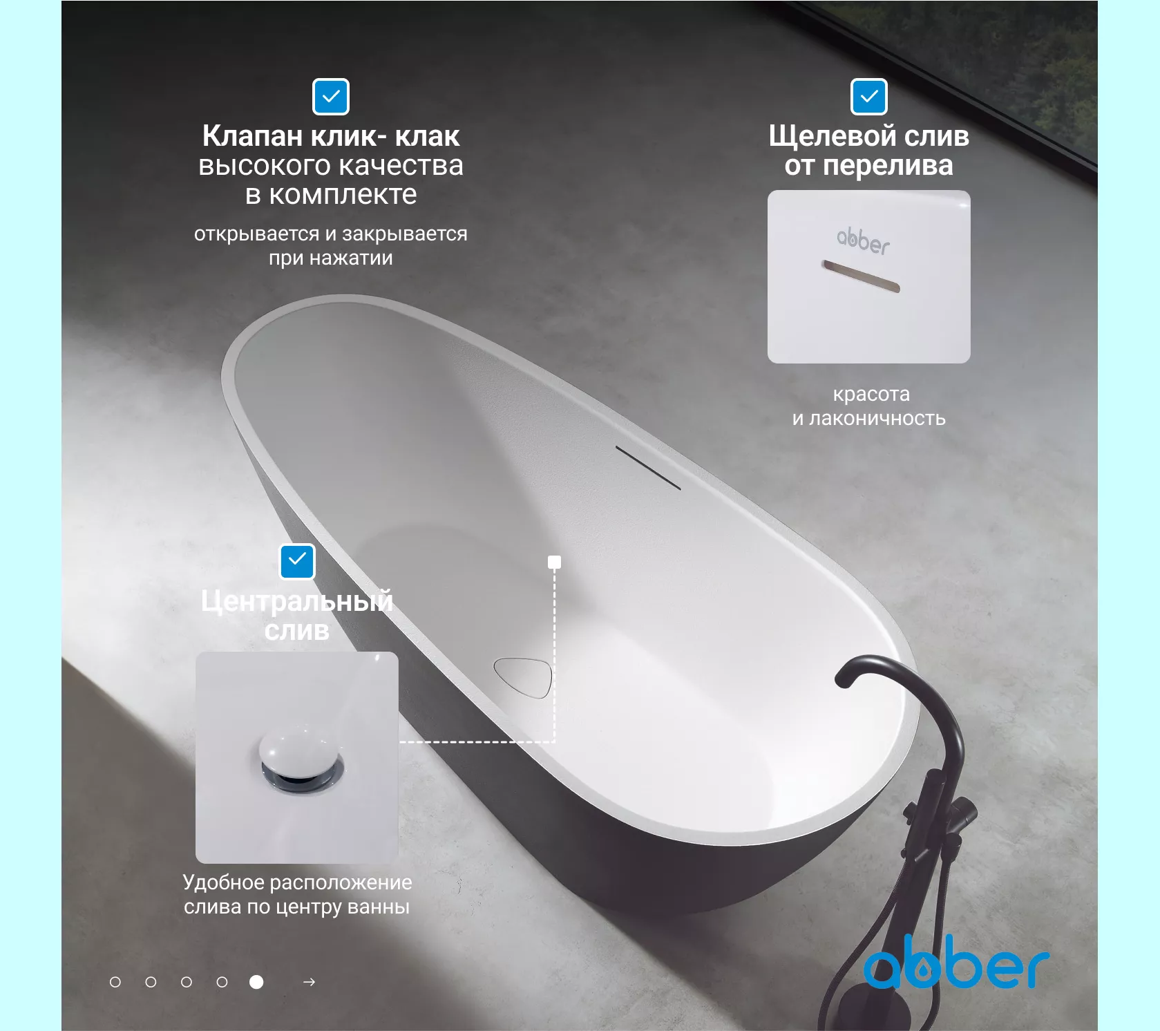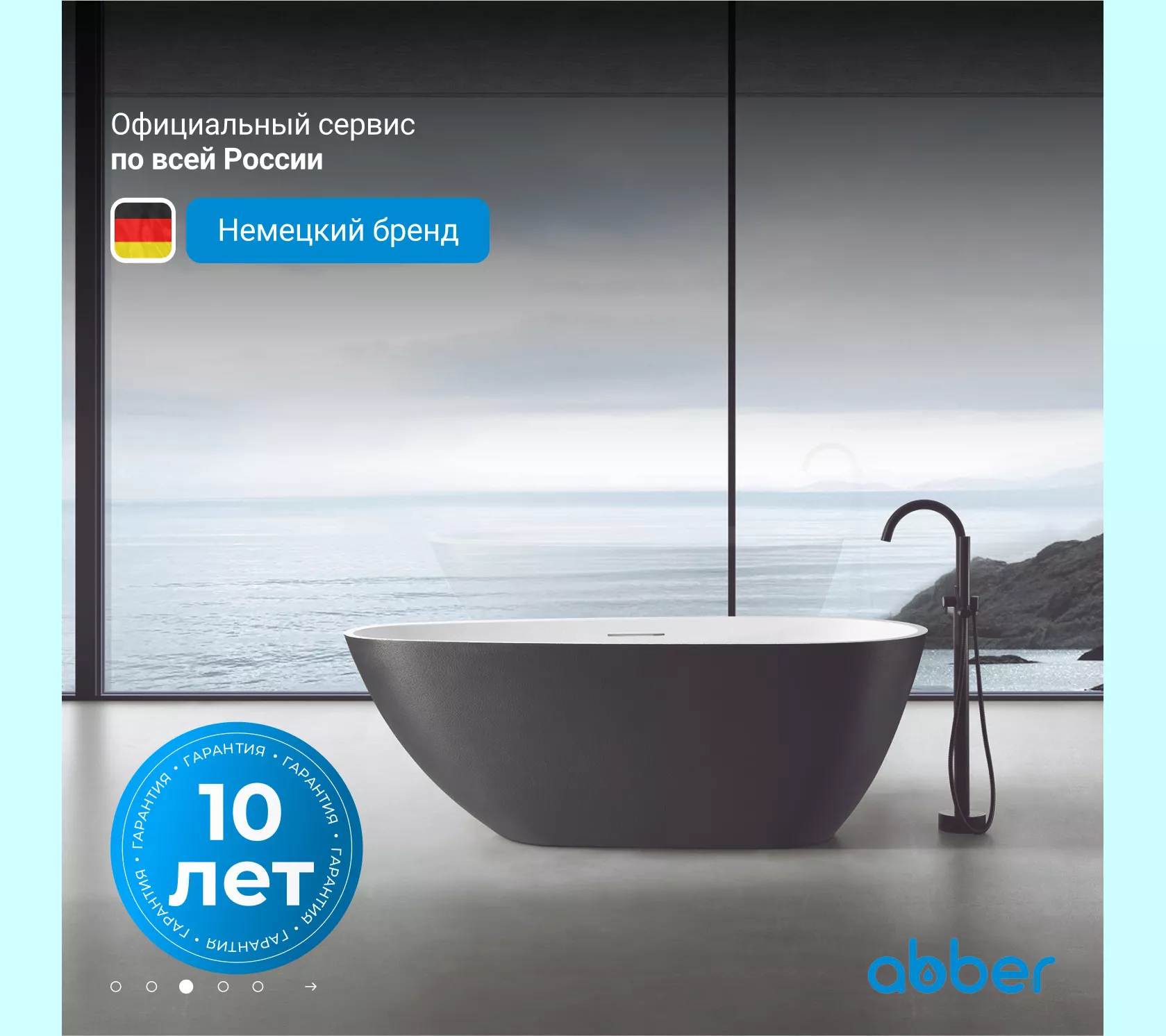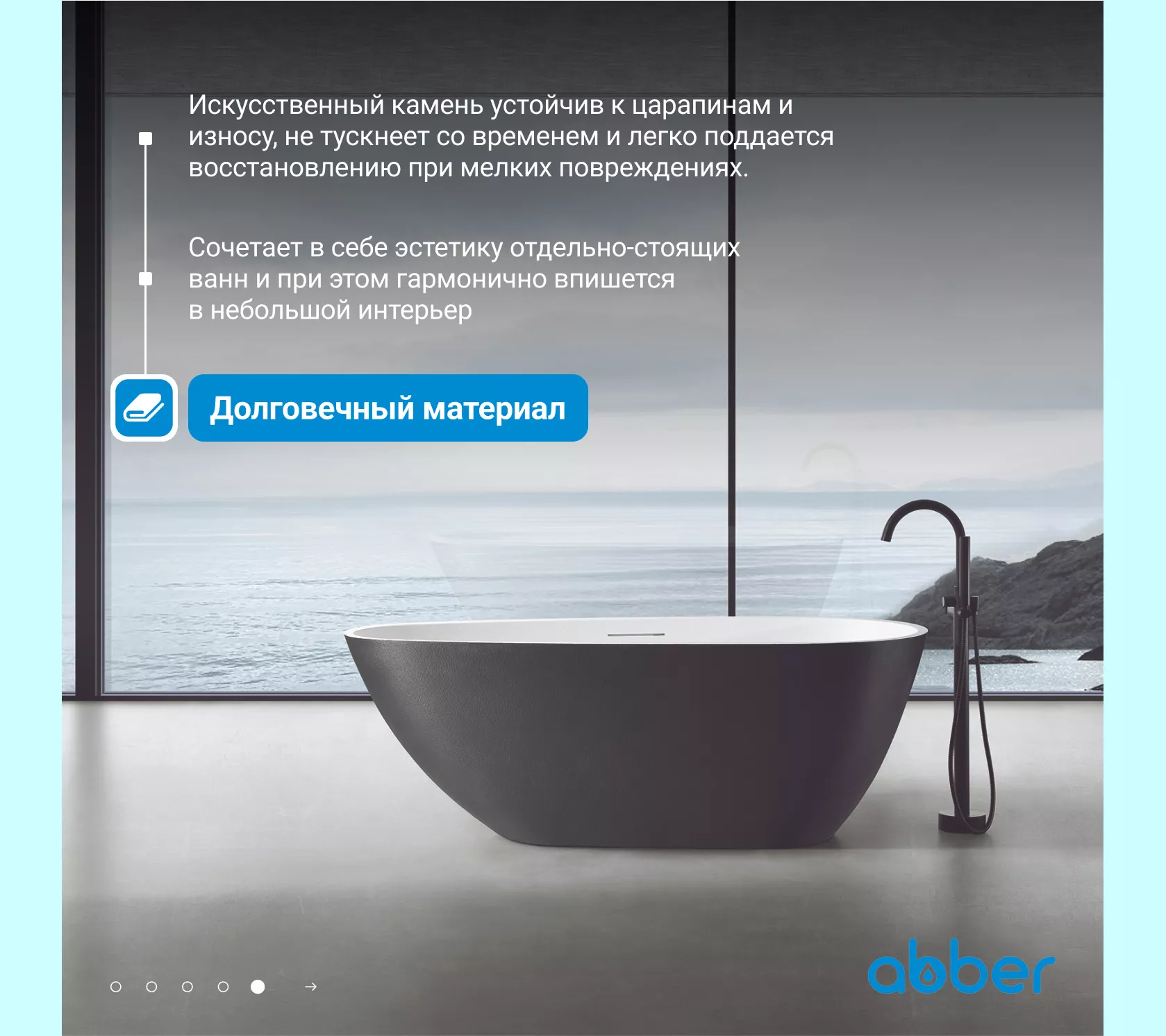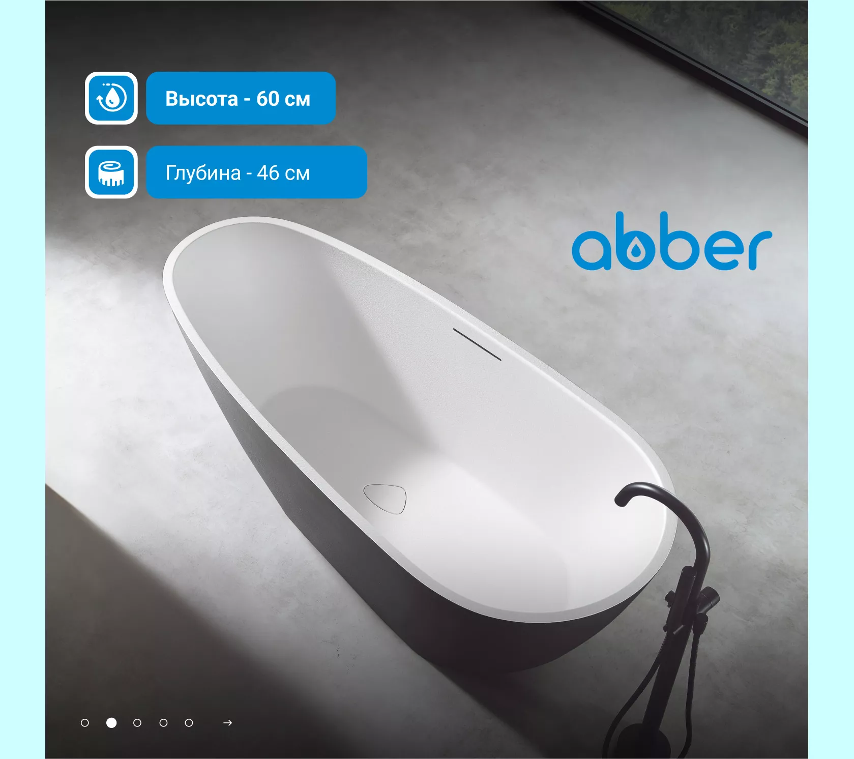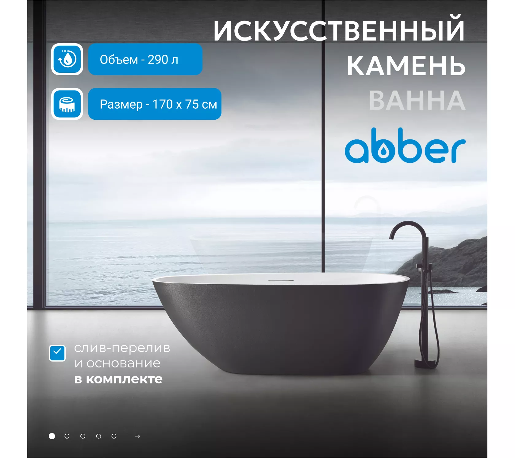 Ванна из искусственного камня ABBER Dortmund 170х75 черно-белая матовая