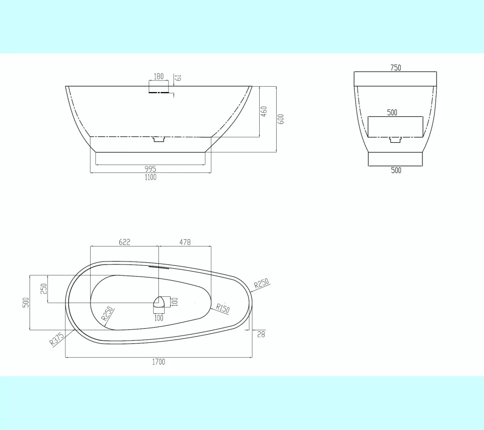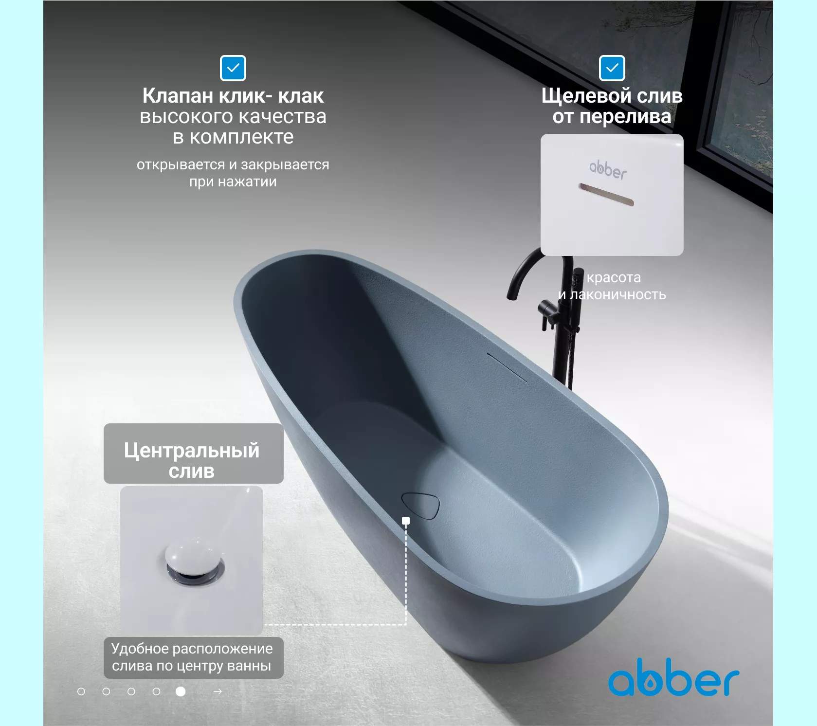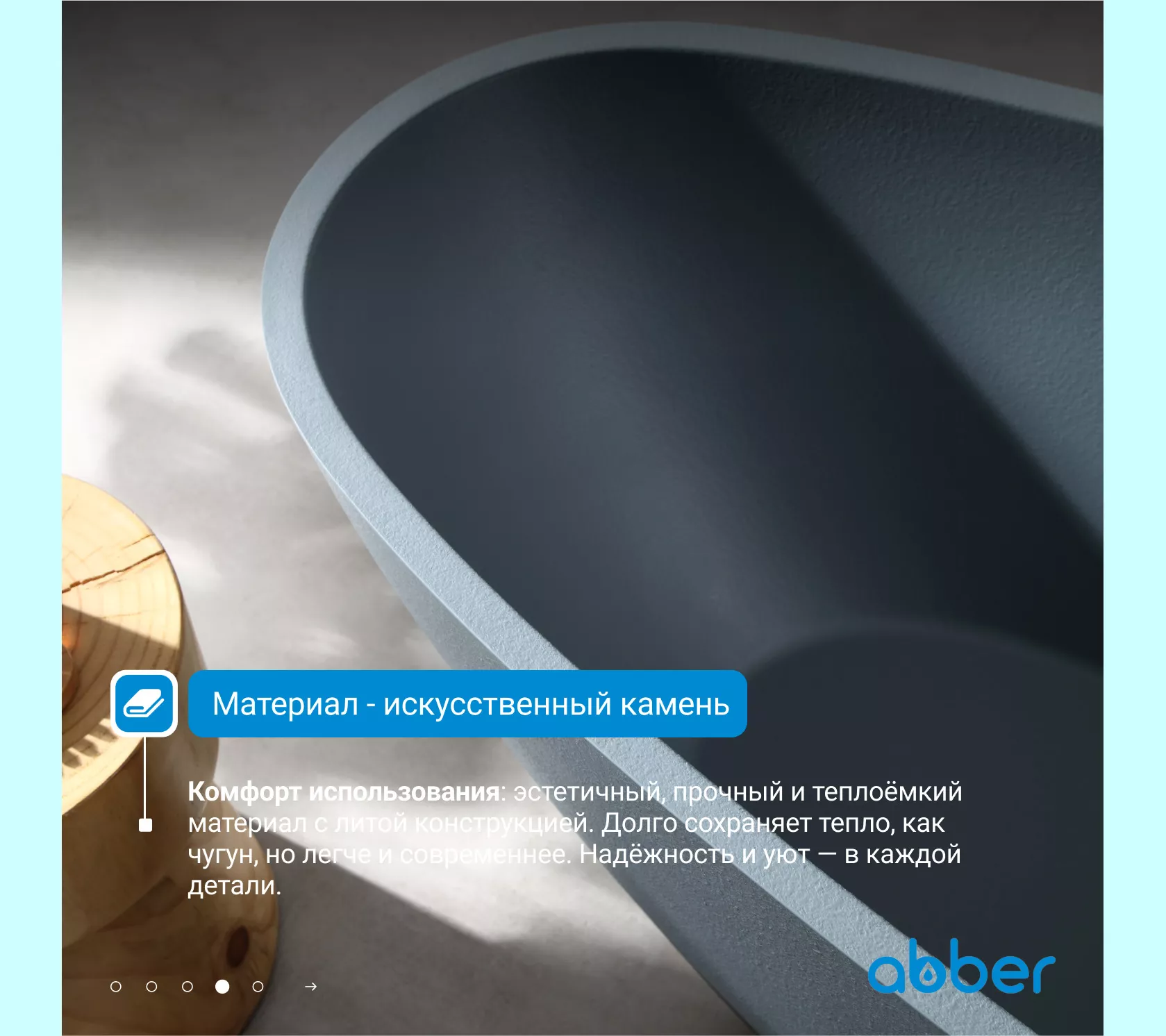 Ванна из искусственного камня ABBER Dortmund 170х75 серая матовая