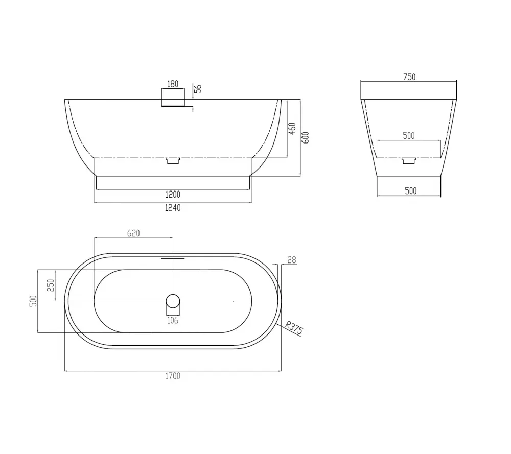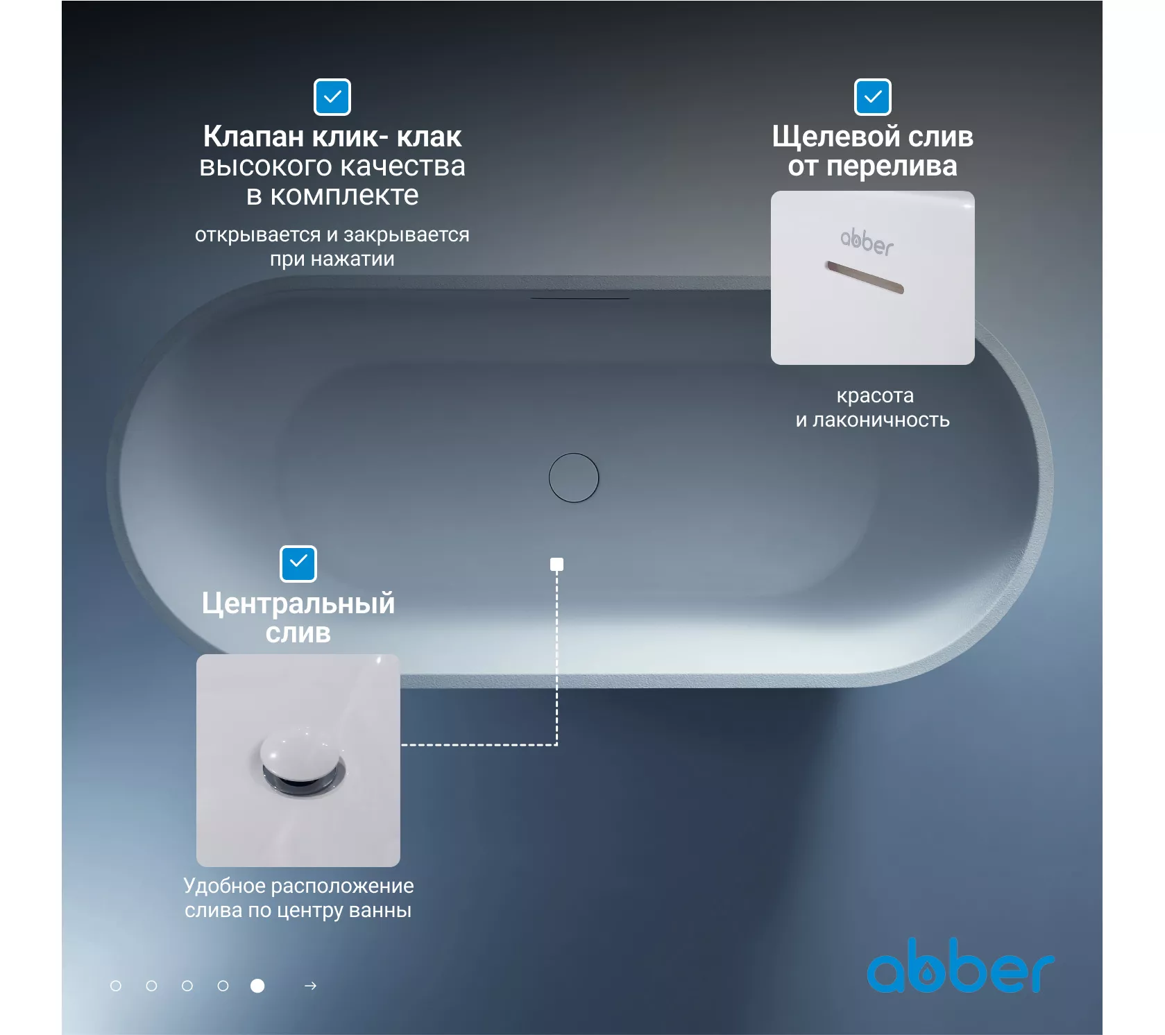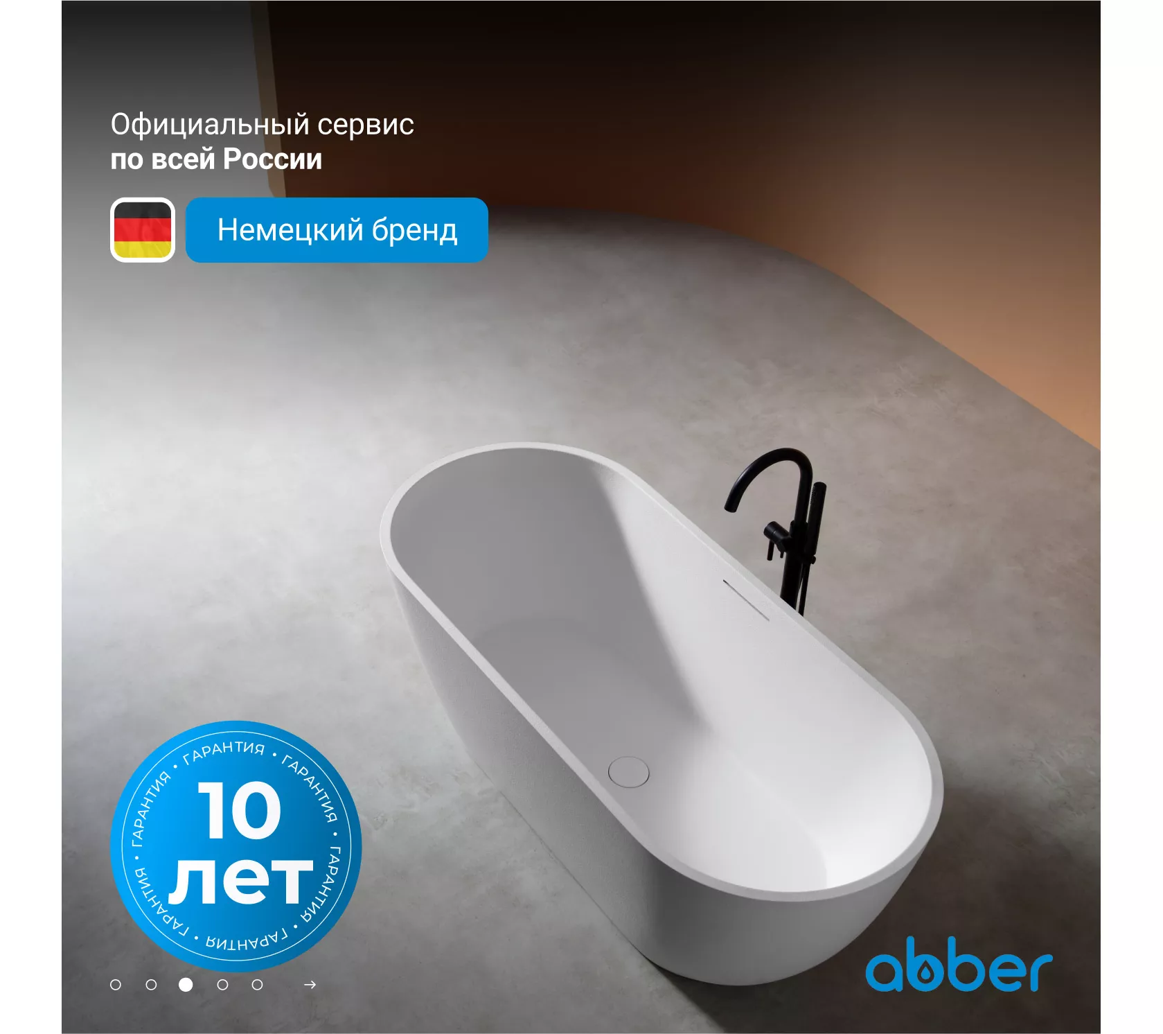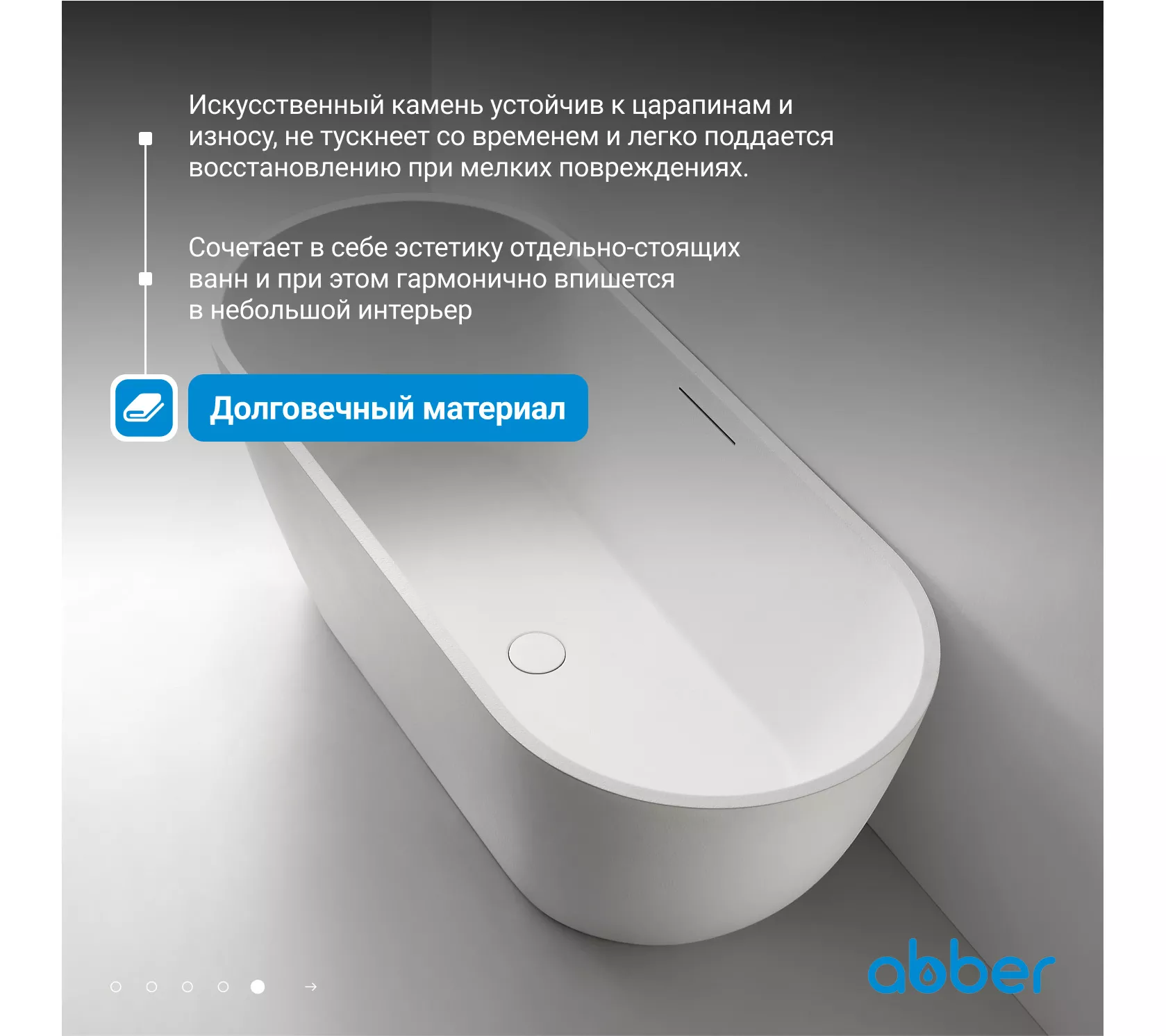 Ванна из искусственного камня ABBER Frankfurt 170х75 белая матовая